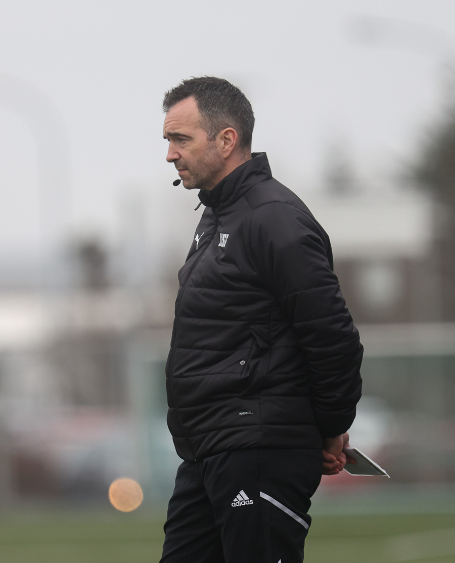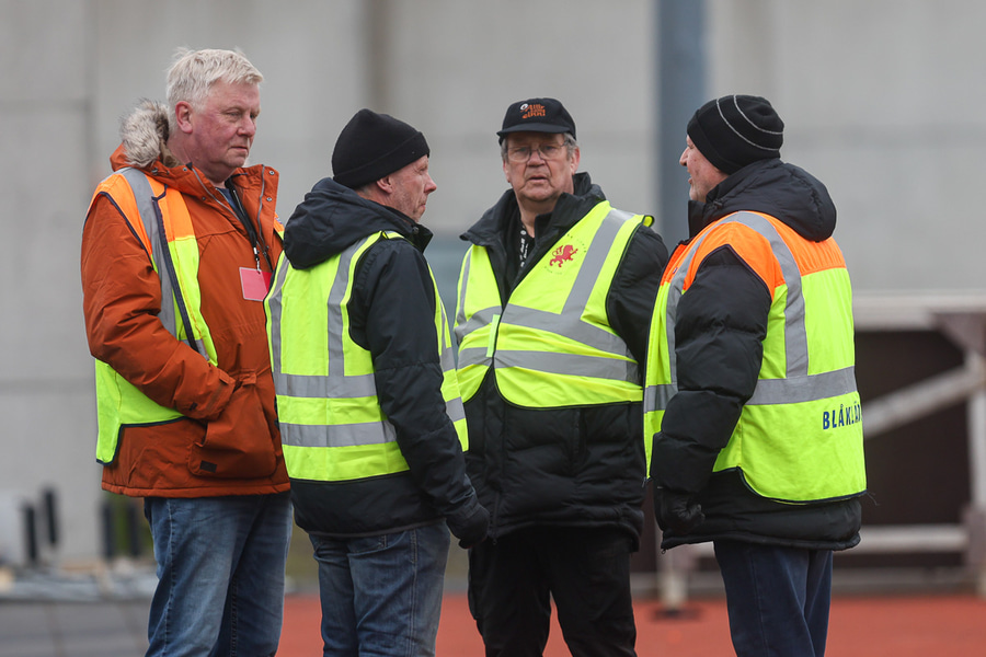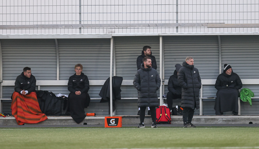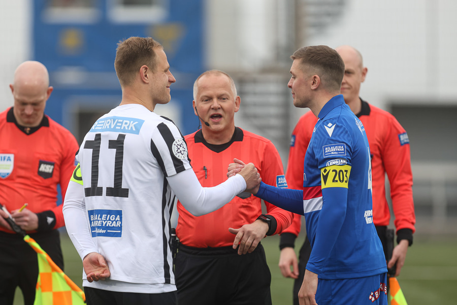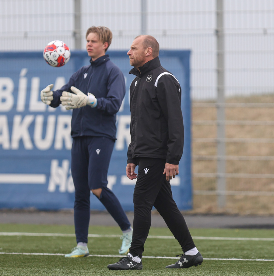 Rúnar gekk til Erlends eftir flautið og fór yfir málin. Ég gæti trúað því að bæði augun verði á Eyþóri og hans varnartilburðum í seinni.