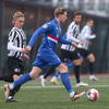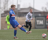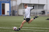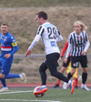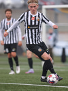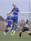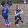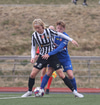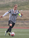 Kiddi lætur vaða á lofti eftir spyrnu Atla Sigurjóns. Skot beint í varnarmann.