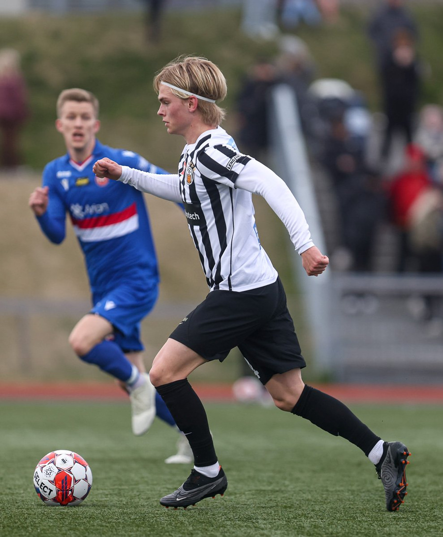 Benoný Breki, sem spilaði fyrri hálfleikinn hjá KR, er uppalinn hjá Gróttu og er náfrændi Kjartans Kára sem nú spilar á láni frá Haugasundi hjá FH.