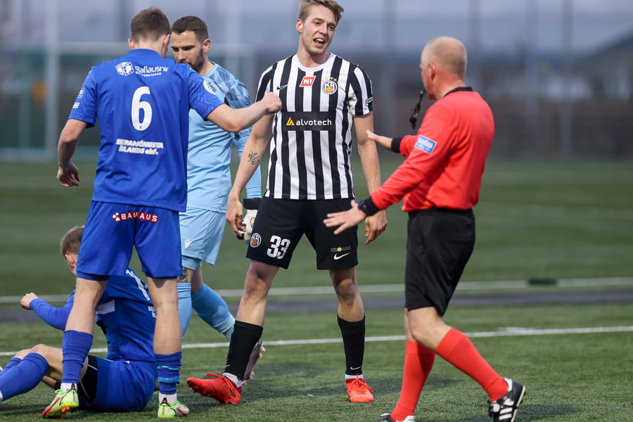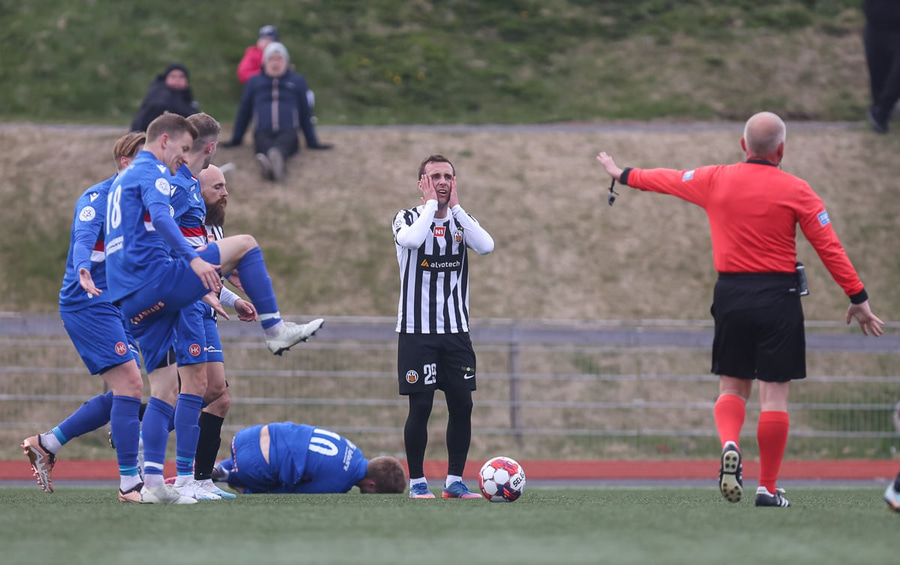 Síðasta verk Eyþórs var að vinna aukaspyrnu. Heimamenn allt annað en sáttir.
