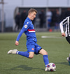 Atli Þór reynir að klippa boltann í netið en er dæmdur brotlegur.