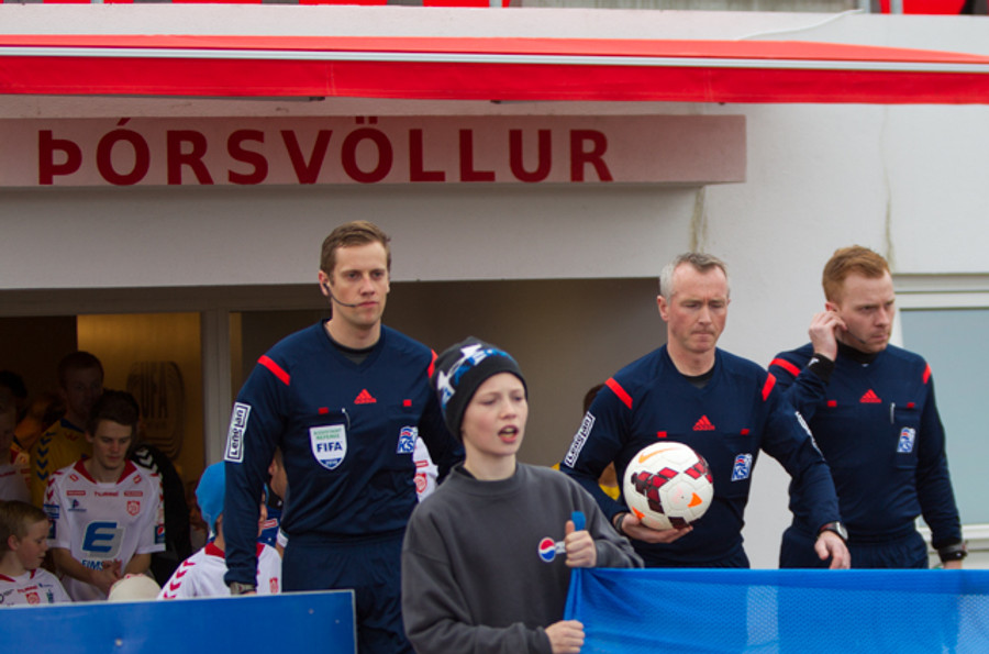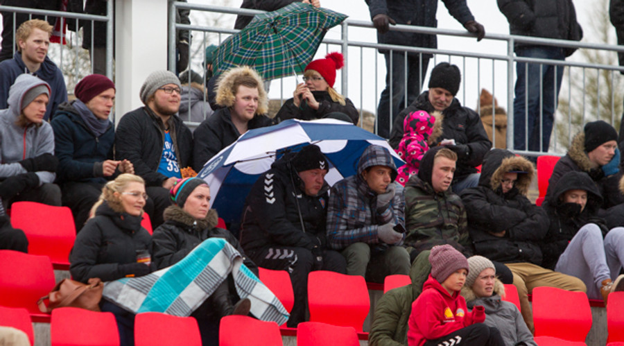 Frekar kalt er hér í dag og ef þú ert á Þórsvelli og ekki í úlpu og með húfu. Þá gætirðu verið í veseni