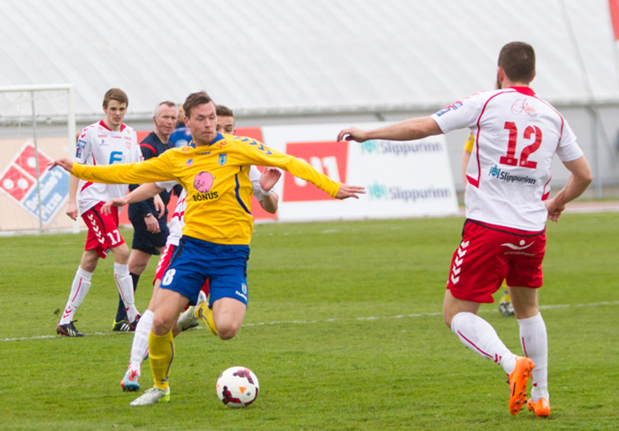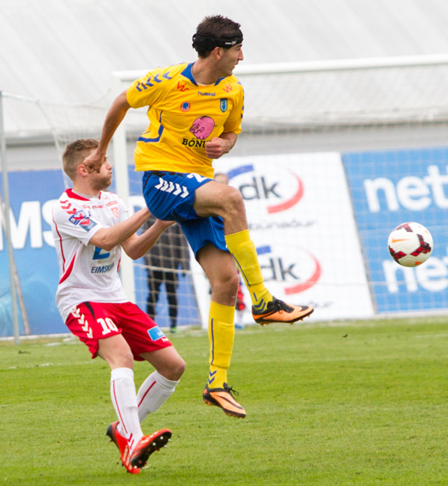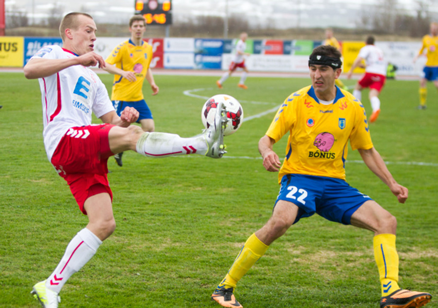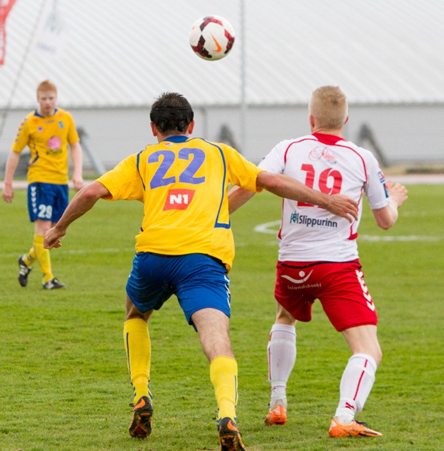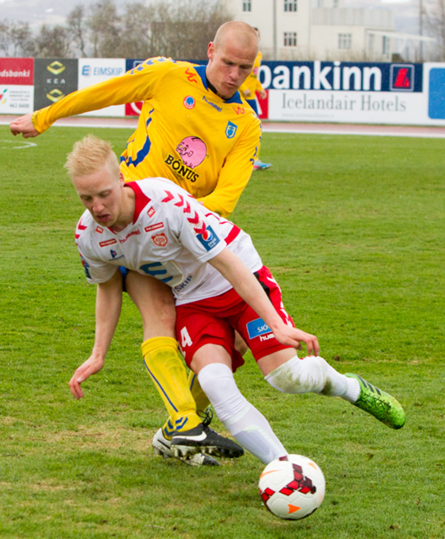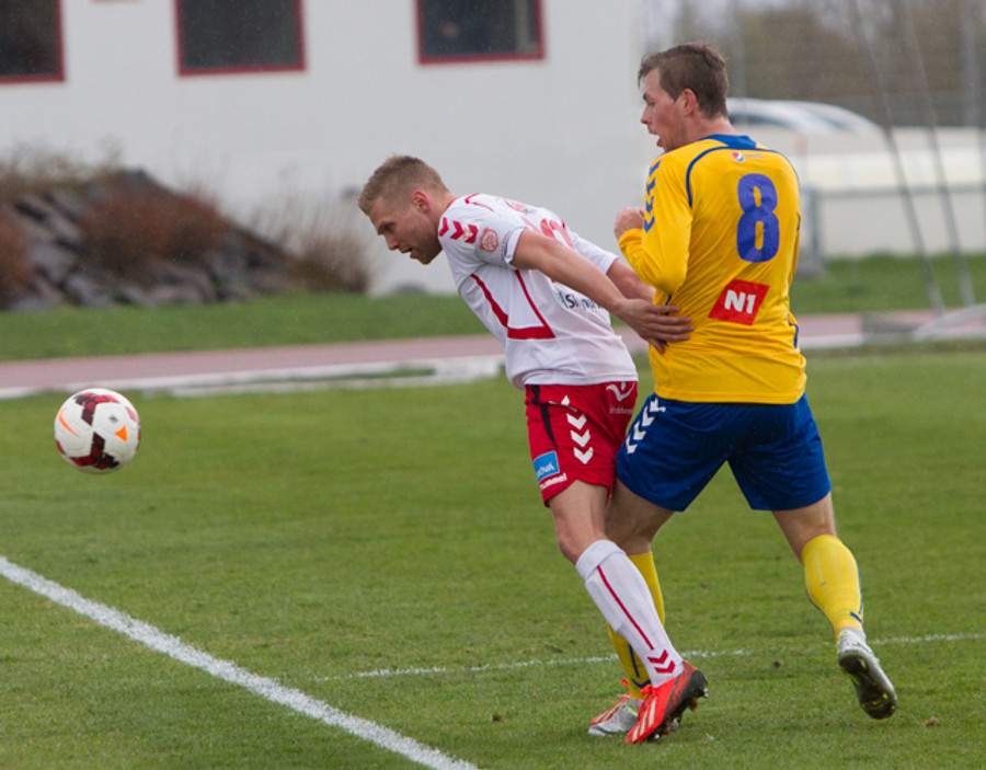 Kristinn Þór heppinn að sleppa við spjald, hefði hæglega getað fengið gult. Spurning um háskaleik