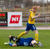 Kristinn Þór Björnsson fer meiddur af velli eftir tæklinguna áðan, nafni hans kemur inn í staðinn