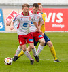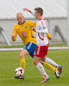 Vel dæmt hjá Kidda. Jónas Björgvin tók sprettinn upp völlinn þar sem Illugi stoppaði hann með peysutogi