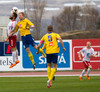 Pressan að aukast og Fjölnismenn falla aftar á völlinn. Þórður Birgis með skalla framhjá.