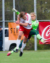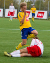 Árni Arnarson með laglegt skot utan af vinstri vængnum en Fannar ver vel í horn. Úr horninu kemst Árni aftur í gott færi en skallar í varnarmann