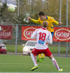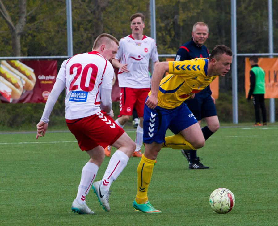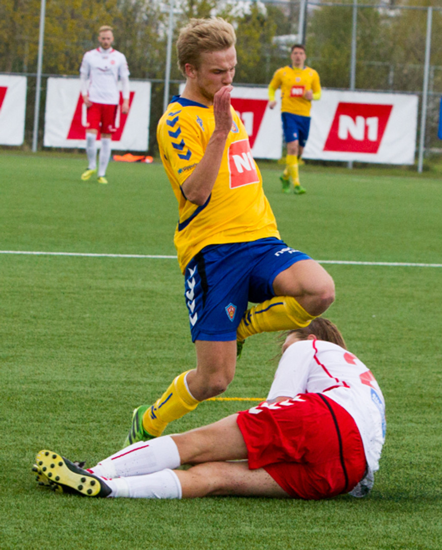 Hallgrímur Mar hljóp upp vinstri vænginn og sólar sig í gegn, sendi hann fyrir en þar var engin.