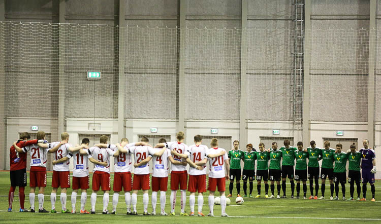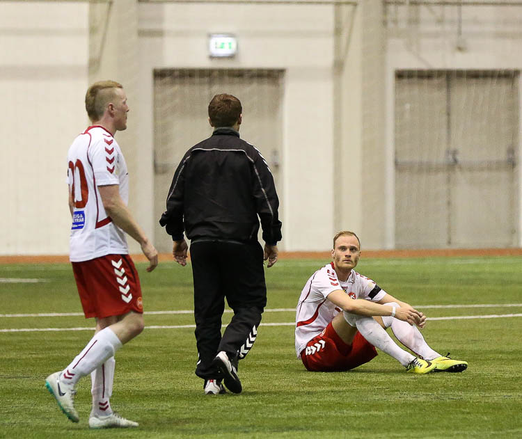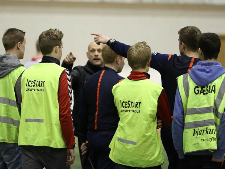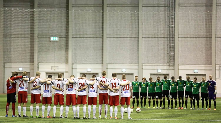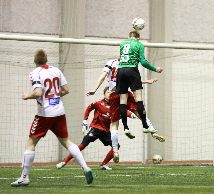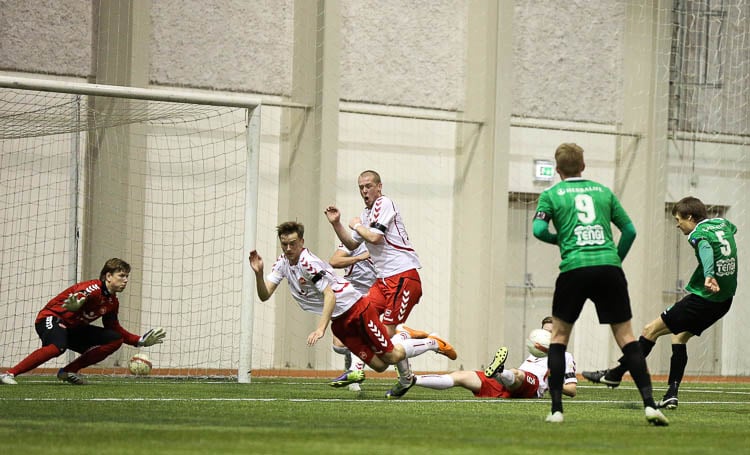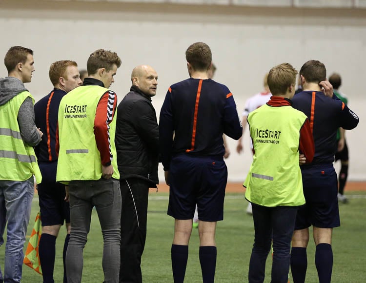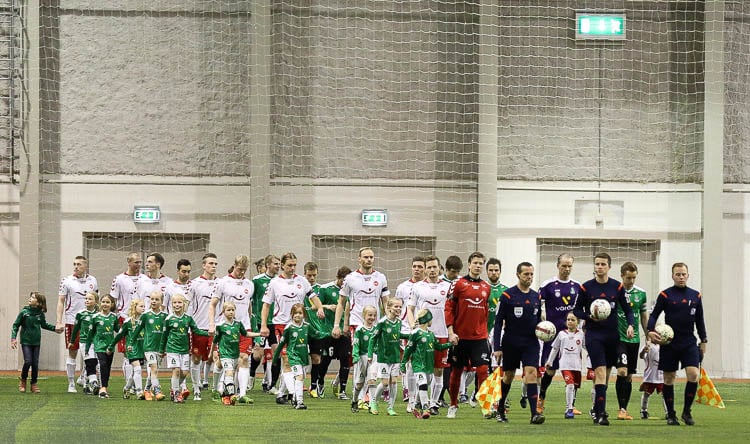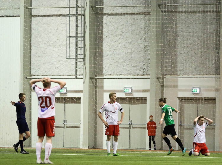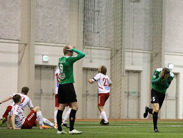 Kórinn grænn sem aldrei fyrr en samt líður mér eins og ég sé á leik í fótbolta.net mótinu. Þetta innanhúss dæmi venst illa