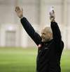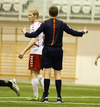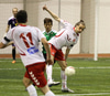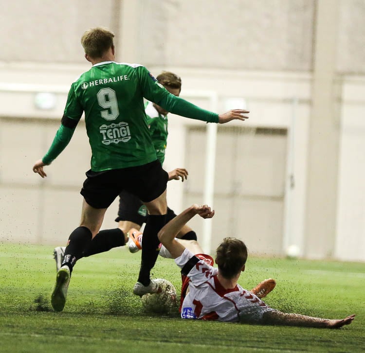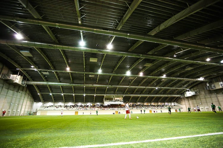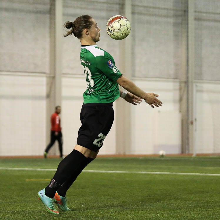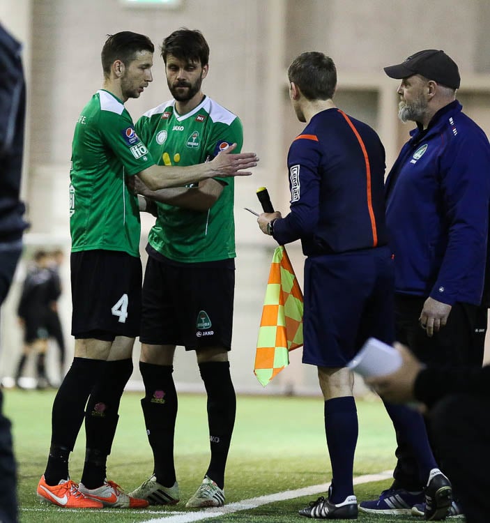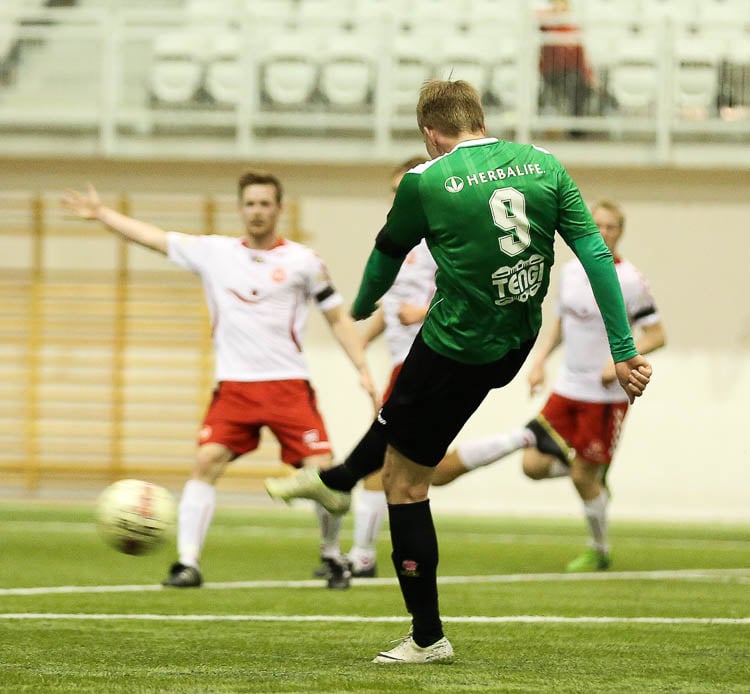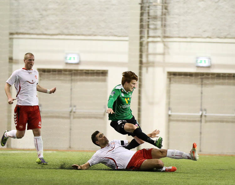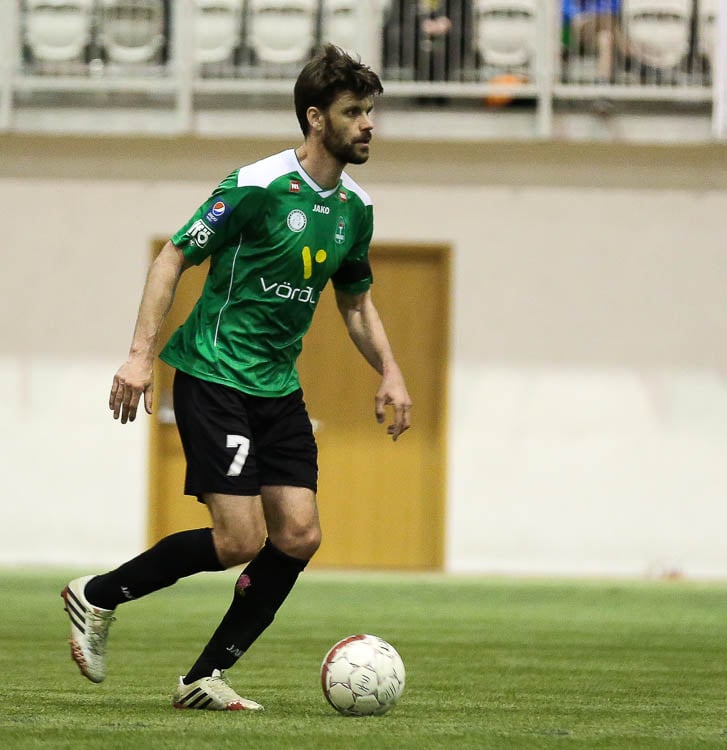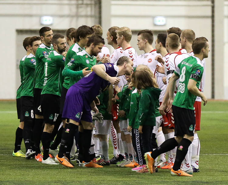 Kórinn grænn sem aldrei fyrr en samt líður mér eins og ég sé á leik í fótbolta.net mótinu. Þetta innanhúss dæmi venst illa