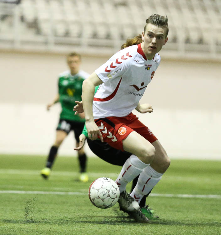 Tómas Óli við það að sleppa í gegn, skýtur í skrefinu, beint á Beitir. Þarna hefði Tómas Óli getað gert útum leikinn. Opinn og fjörugur leikur!