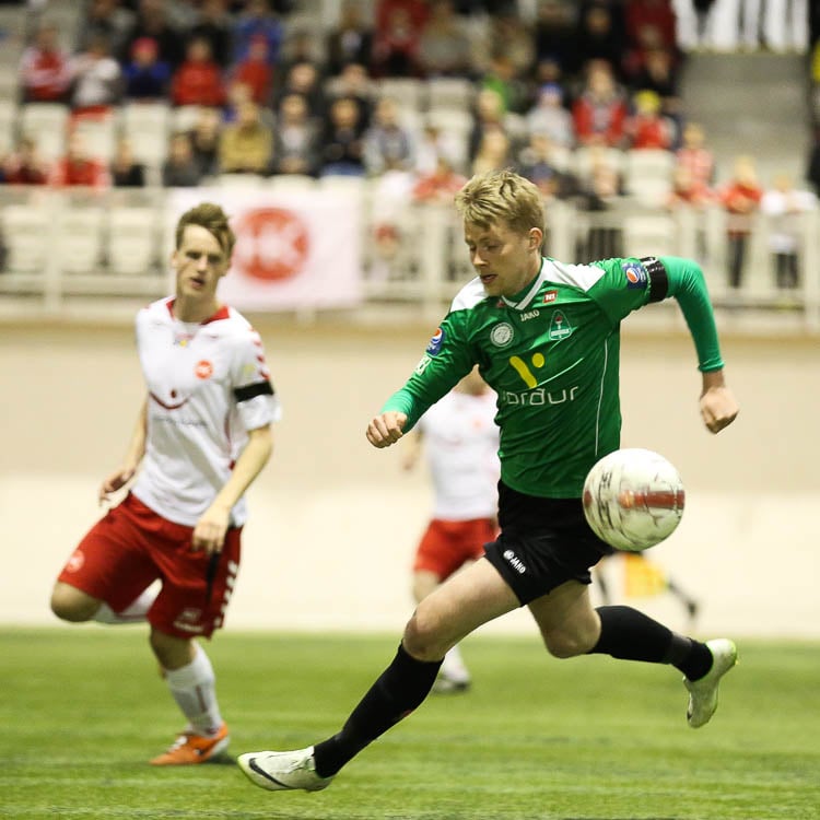 Úff.. þarna hefði Leifur Andri átt að gera betur, að minnsta kosti láta reyna á Gunnleif í markinu. Skot Leifs Andra yfir markið.