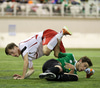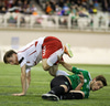 HK á aukaspyrna á stórhættulegum stað! Beitir Ólafsson með langt útspark og Elfar Freyr brýtur á Guðmundi Atla við vítateigslínuna!