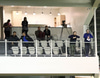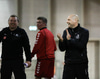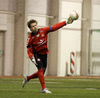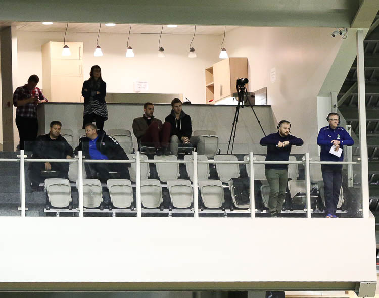 Bæði lið hita vel upp fyrir átökin sem framundan eru. Ennþá 20 mínútur í leik og fólk er að týnast inn hvað úr hverju. Nóg af krökkum að minnsta kosti.