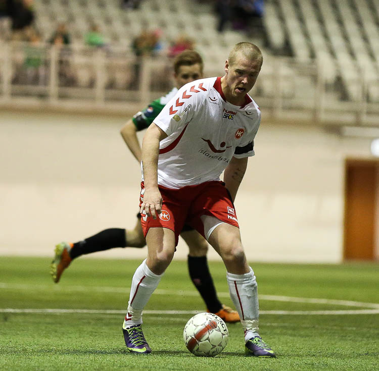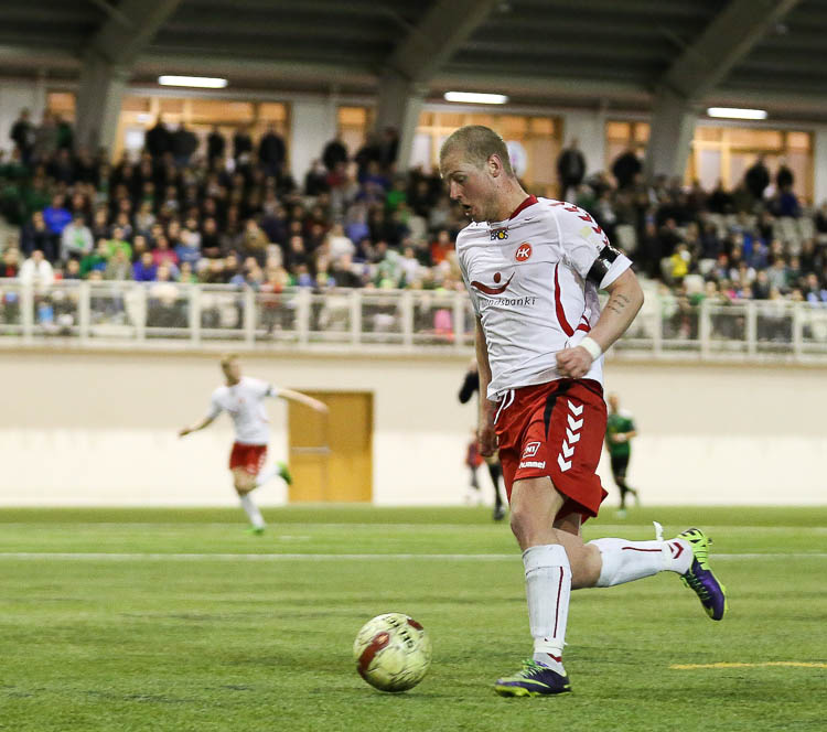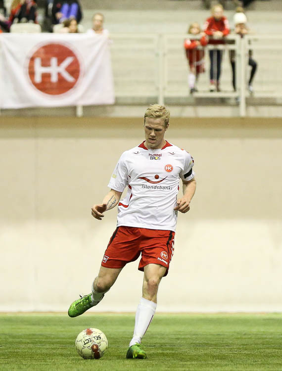 Höskuldur aftur með fyrirgjöf frá hægri sem Elfar Árni skallar yfir. Höskuldur gerði vel og plataði þrjá HK-inga með einu bragði. Vel gert.