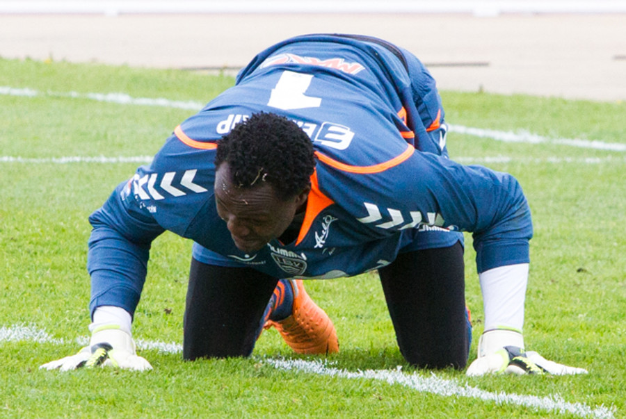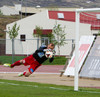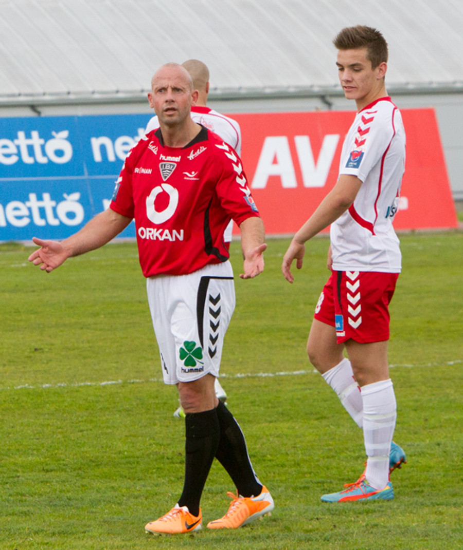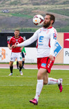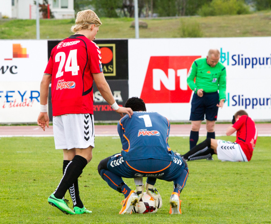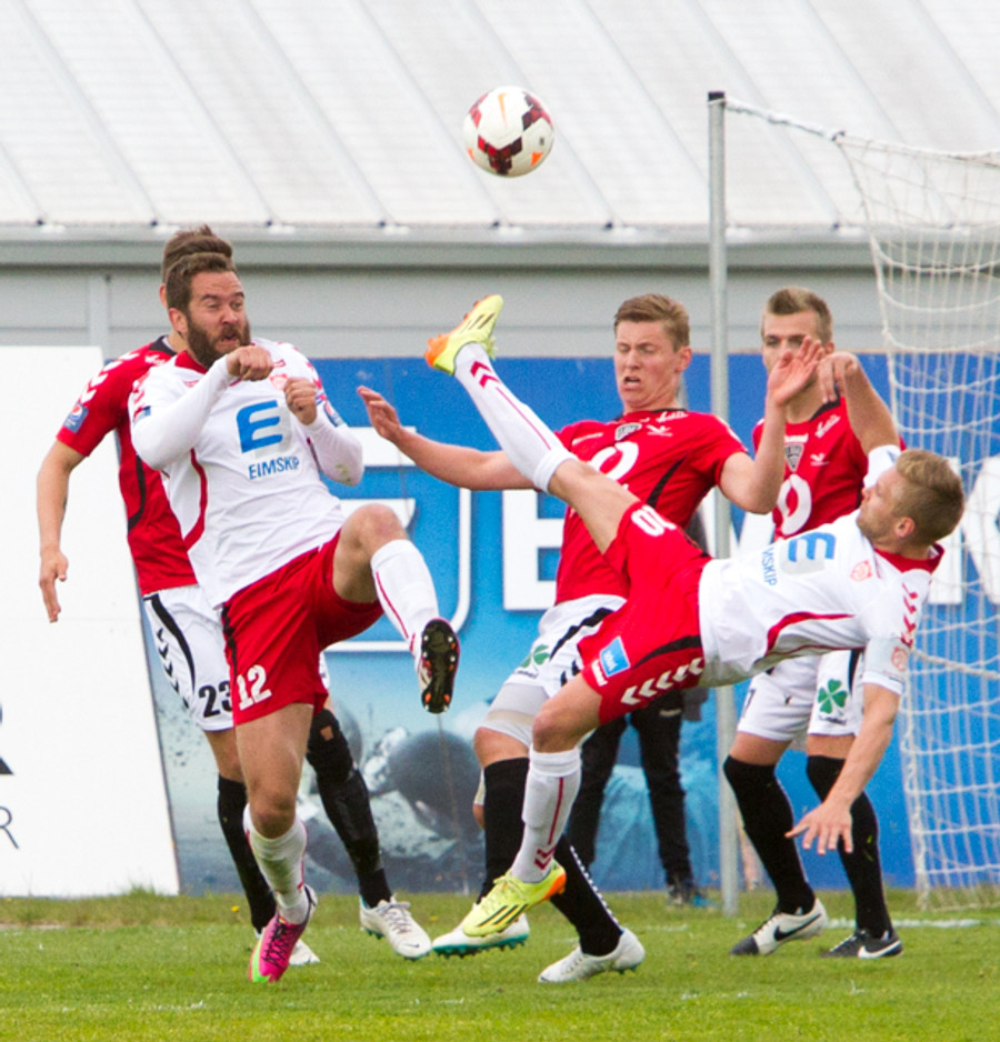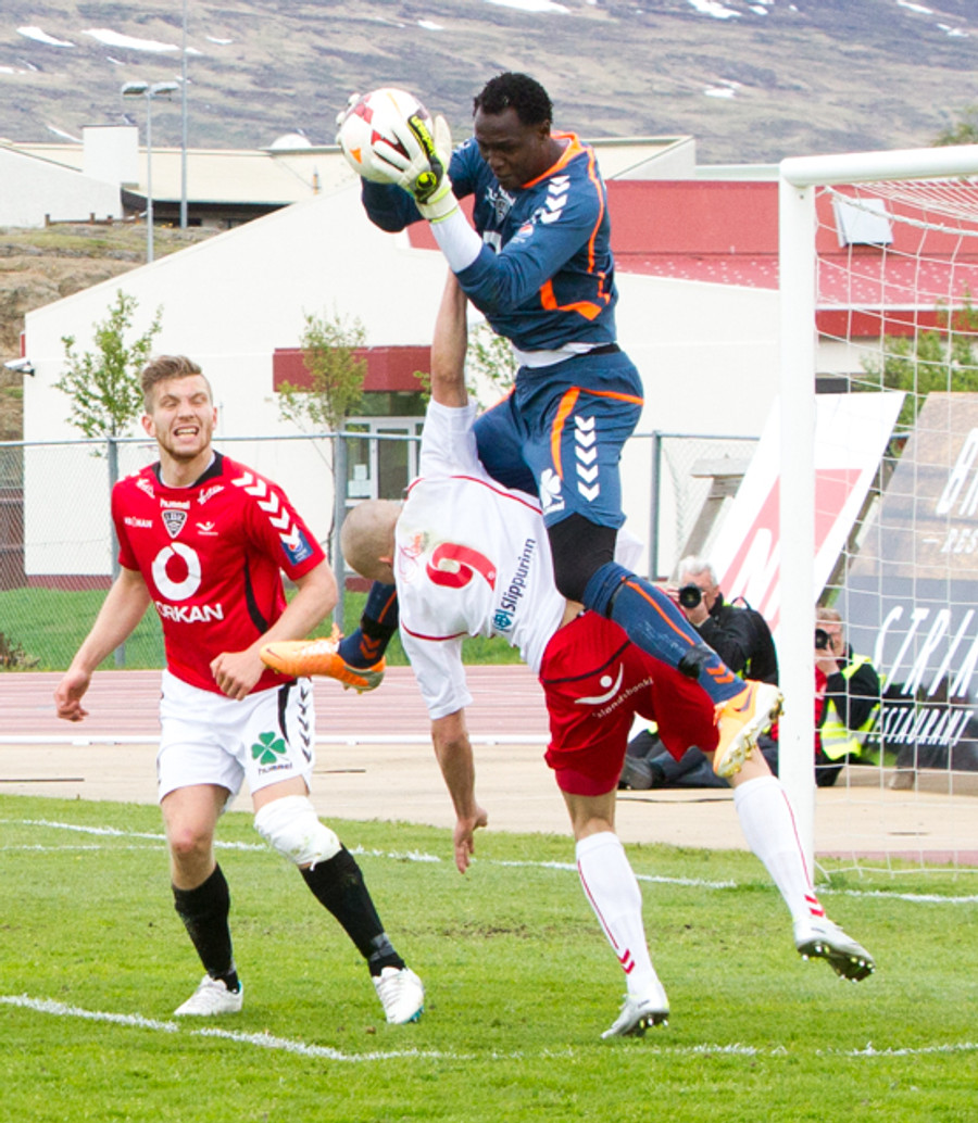 Sandor fór í úthlaup en missti af boltanum, náði þó að bjarga sér með markvörslu eftir skot frá Gunnari Þorsteinssyni.