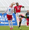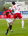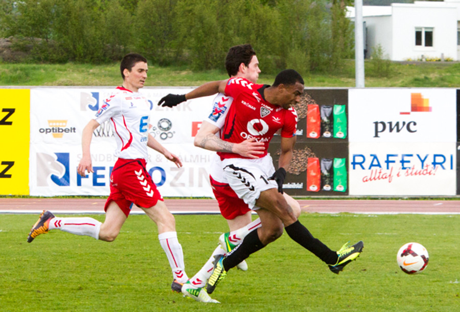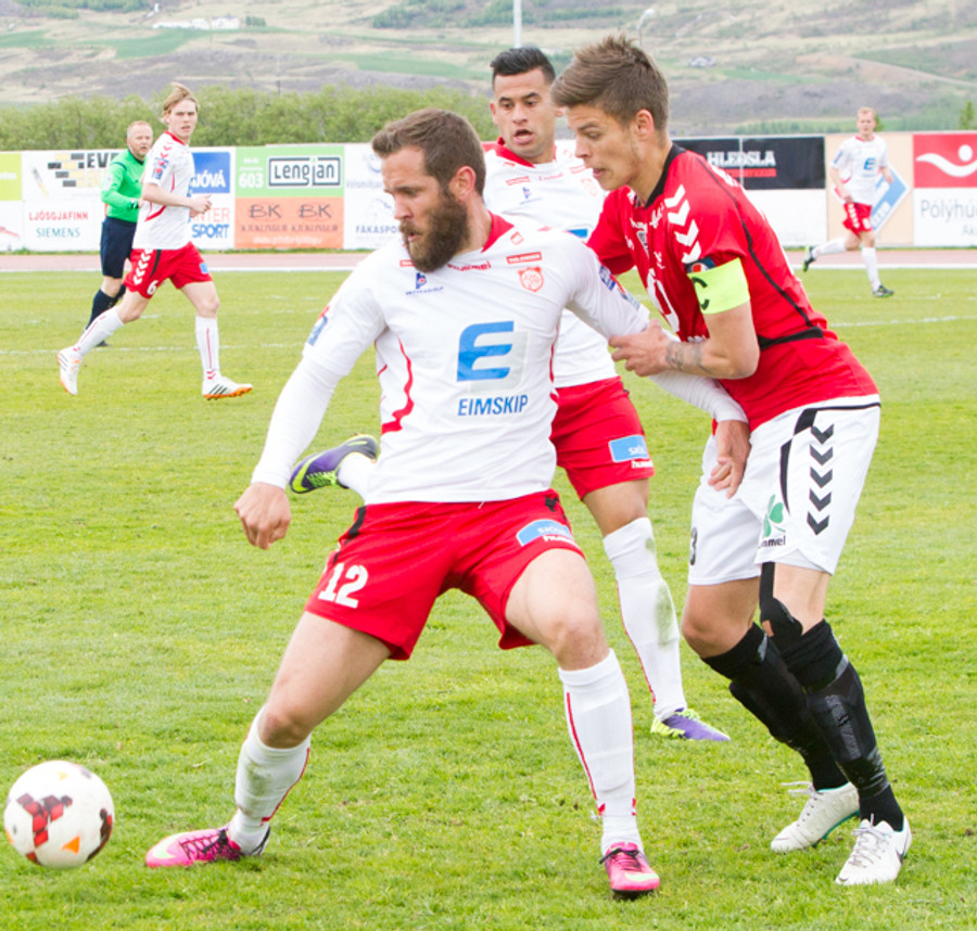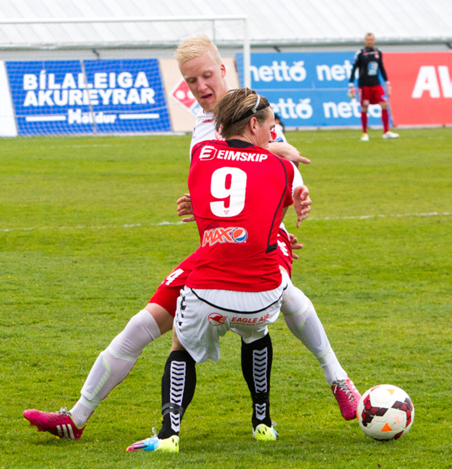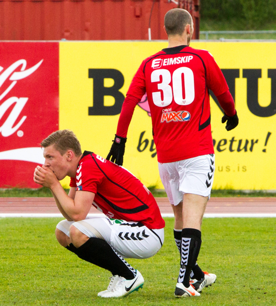 Þórsarar tæpir. Ármann Pétur ætlaði að skalla boltann til baka á Sandor Matus en Jonathan Glenn komst á milli og stal boltanum. Sandor náði þó að hirða boltann af honum til baka.