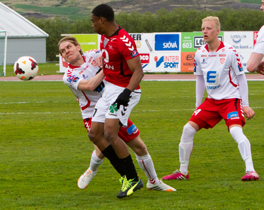 Ármann Pétur í mjög góðu færi. Fékk boltann á lofti við vítateigslínu en setti hann framhjá markinu.