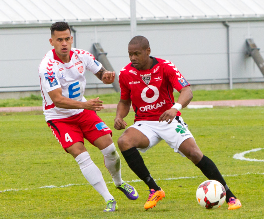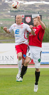 Shawn Nicklaw virðist geta allt. Hann á hér langt innkast inn á markteig sem skapar smá hættu. Jóhann Helgi vildi vítaspyrnu en fékk ekki.