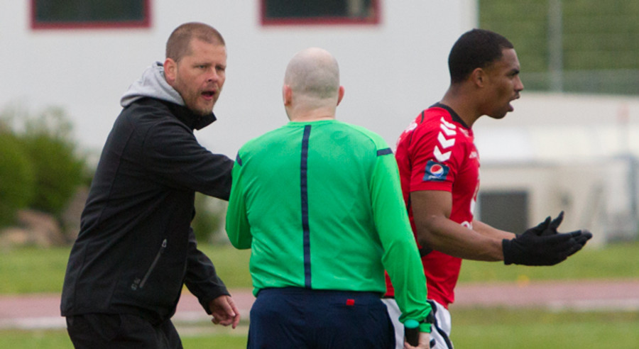 Jónas Sigurbergs fagnaði víst í andlitið á Deano þegar hann fékk rauða spjaldið. Þeir voru búnir að vera að rífast allan leikinn.
