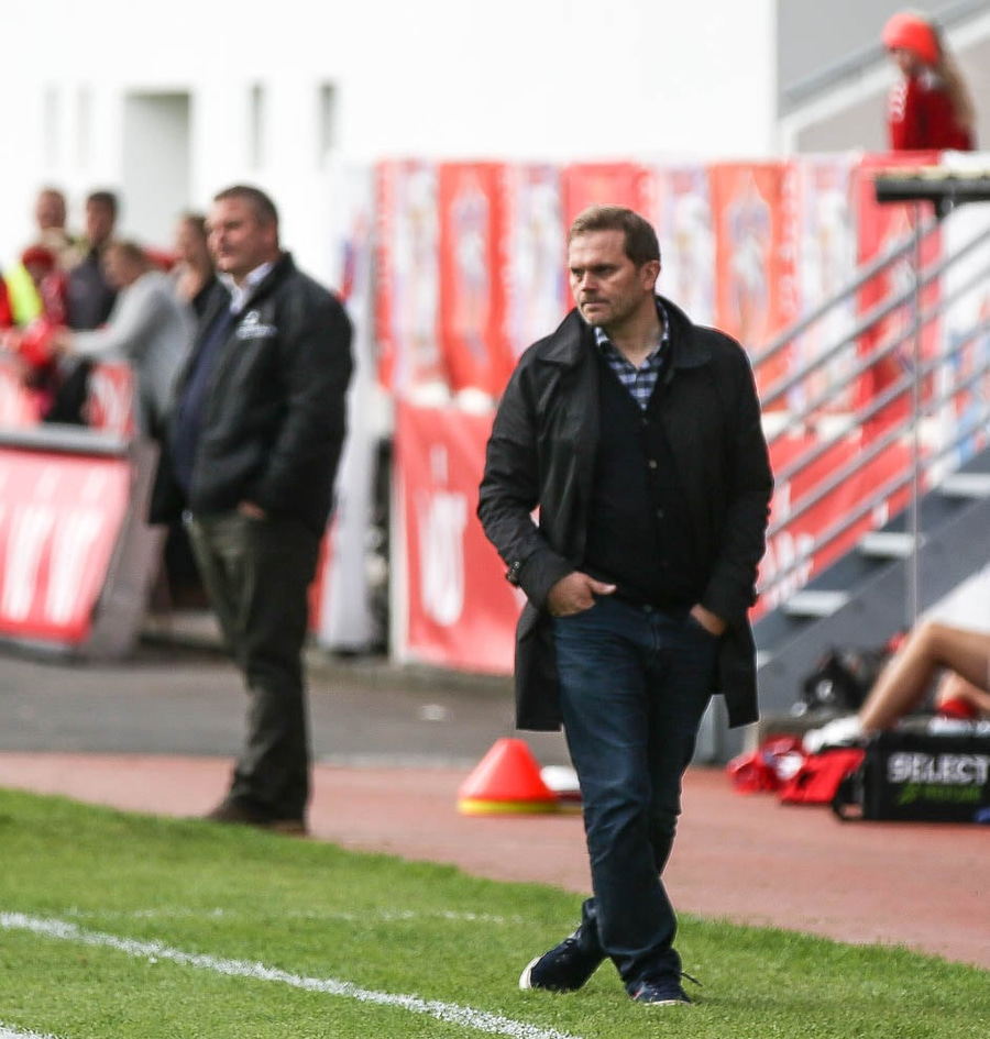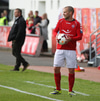 Gummi Ben sýnir takta á hliðarlínunni þegar boltinn fer úr leik. Gummi skallar boltann á Gísla Pál Helgason svo hann geti tekið innkastið og uppsker lófaklapp í kjölfarið.