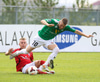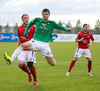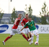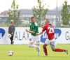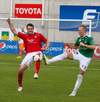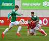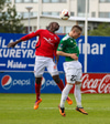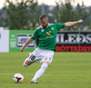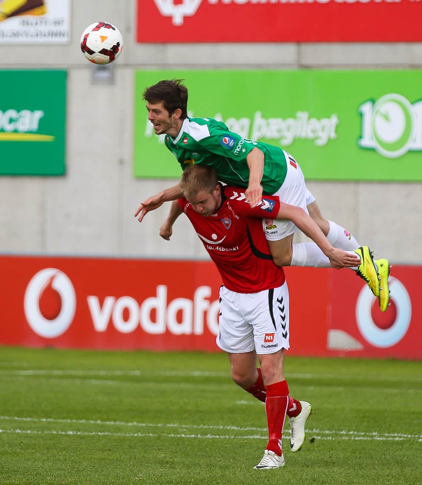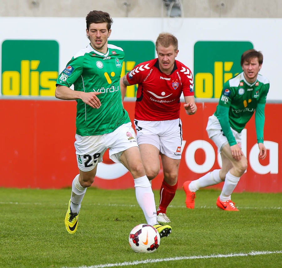 Guðjón Pétur Lýðsson fær fínt skotfæri á vítateigslínu. Guðjón Pétur ætlar að setja alltof mikinn kraft í skotið og gleymir að stilla miðið. Niðurstaðan er sú að boltinn fer langt framhjá markinu.
