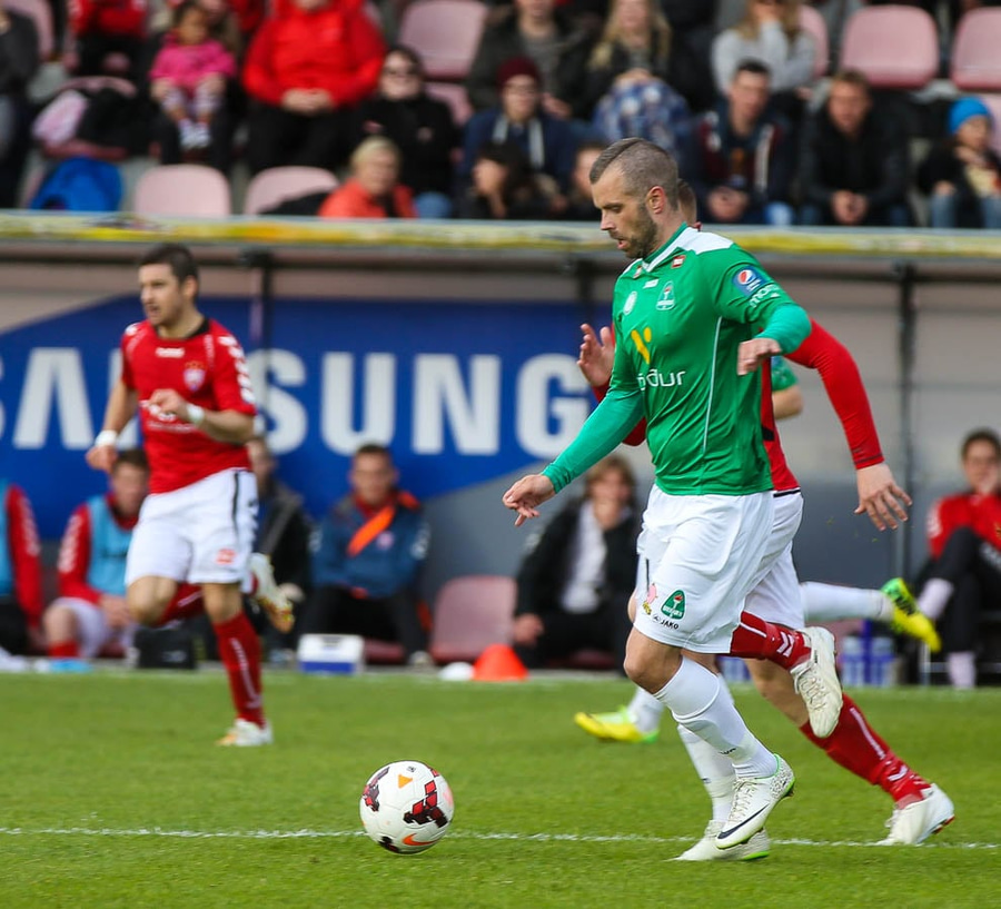 Elfar Árni fær höfuðhögg og það blæðir í kjölfarið. Hann fer út af til að fá aðhlynningu. Spurning hvort hann haldi áfram í síðari hálfleik.