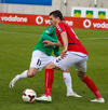 Valsmenn töpuðu boltanum af kæruleysi og Höskuldur hirti hann og þrumaði á markið fyrir utan teig en framhjá.