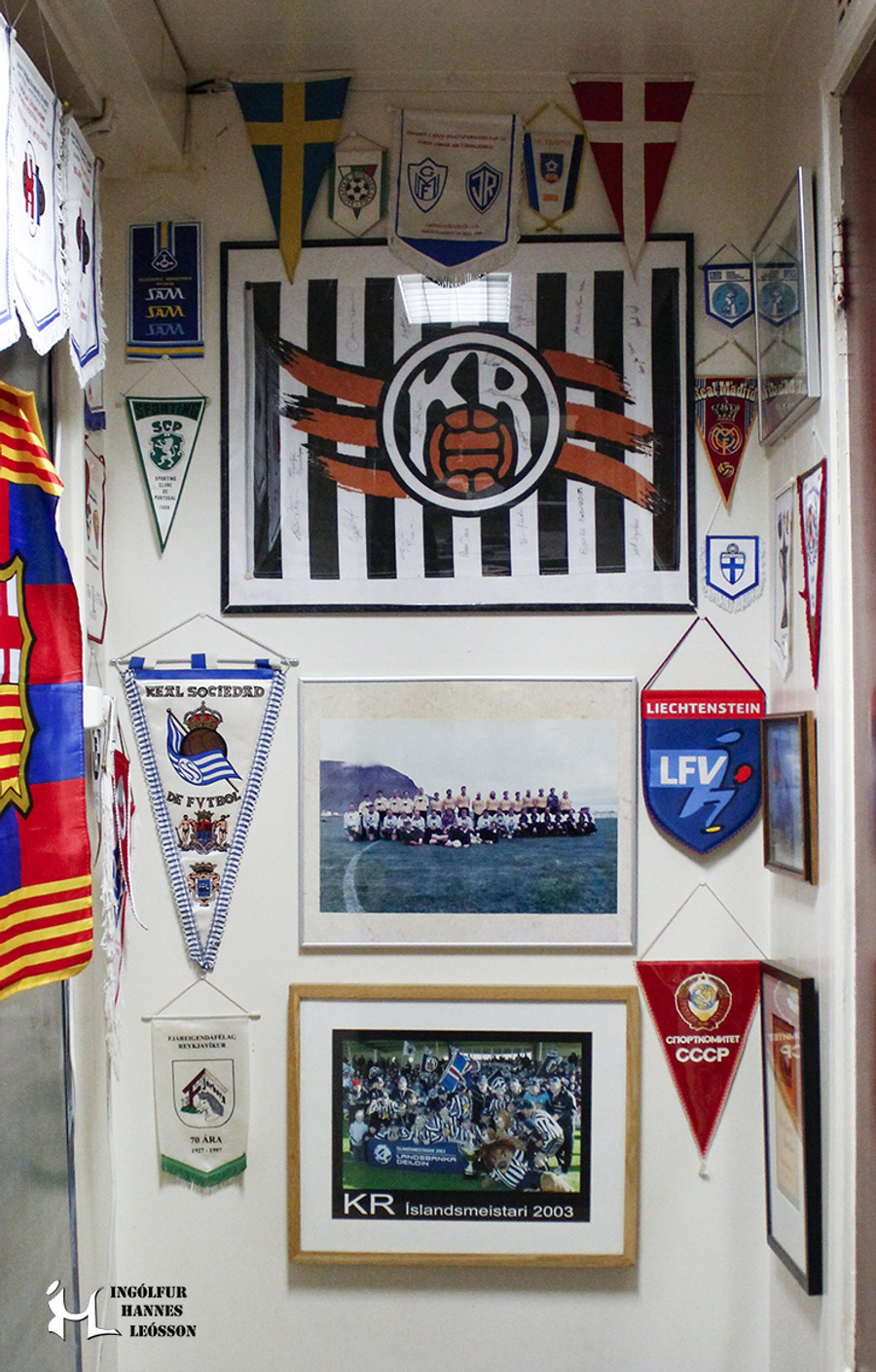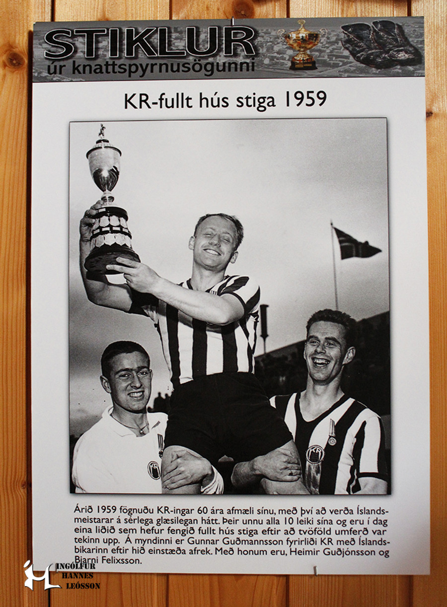 Þeim finnst greinilega skondið að KR-ingarnir eru í vinnu með fótboltanum.