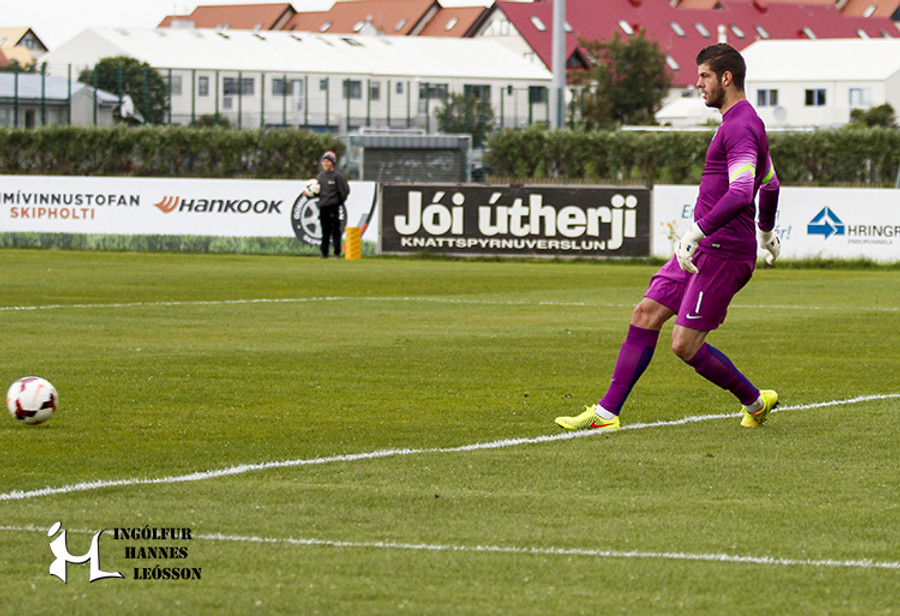 VÁ! Þrjú góð færi í sömu sókn, Chris Commons á fyrsta skotið sem Stefán Logi ver vel, hann tekur síðan frákastið frá McGregor áður en að Pukki á skot í stöngina.
