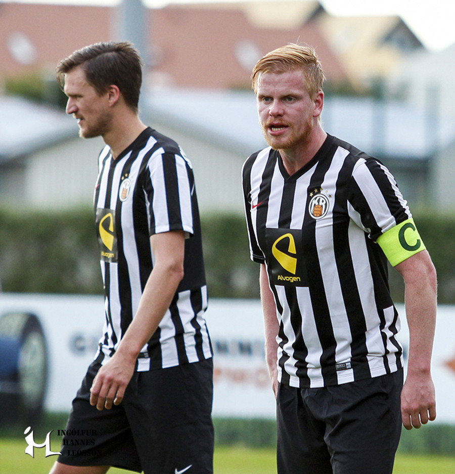 KR eru í hefbundnu svörtu og hvítu búningum sínum.