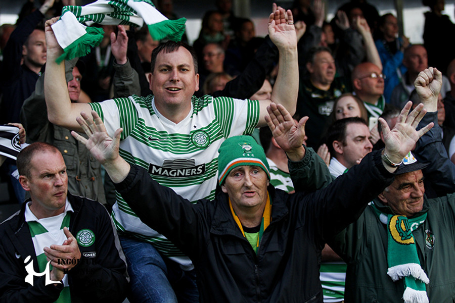 Stuðningsmenn Celtic eru nú þegar byrjaðir að syngja.