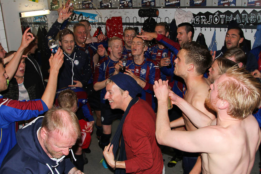 Leiknismenn kunna að fagna duglega og ef þeir fara upp í kvöld má búast við einni slíkri stund. Þegar þeir unnu KR í úrslitaleik Reykjavíkurmótsins í fyrra var mikið fagnað, og svo mikið að einhverjir leikmenn fóru í Breiðholtslaug að næturlagi og héldu partýinu gangandi. Þar fundu öryggisverðir Öryggismiðstöðvarinnar svo bikarinn morguninn eftir og spurning hvort aukin gæsla verði við Breiðholtslaug í kvöld.