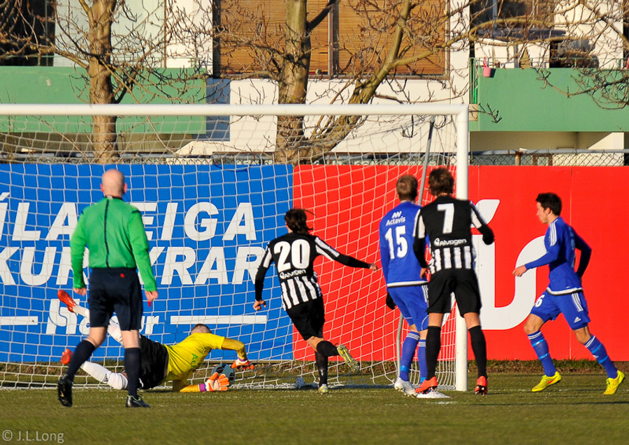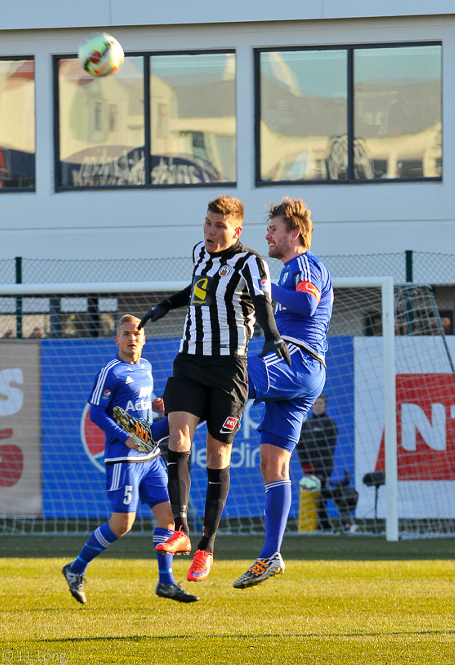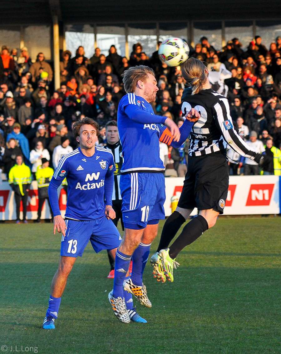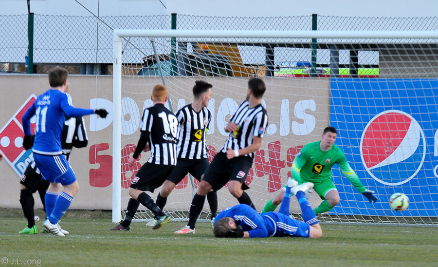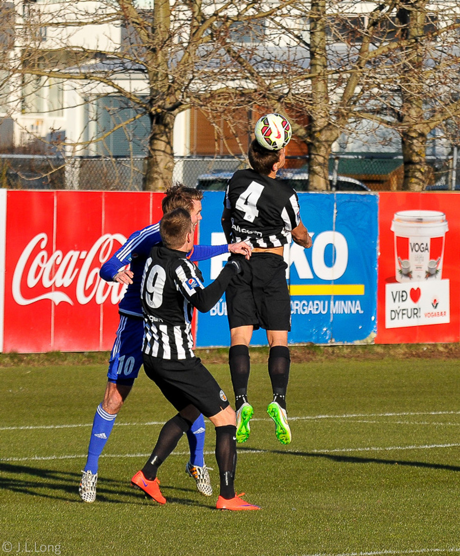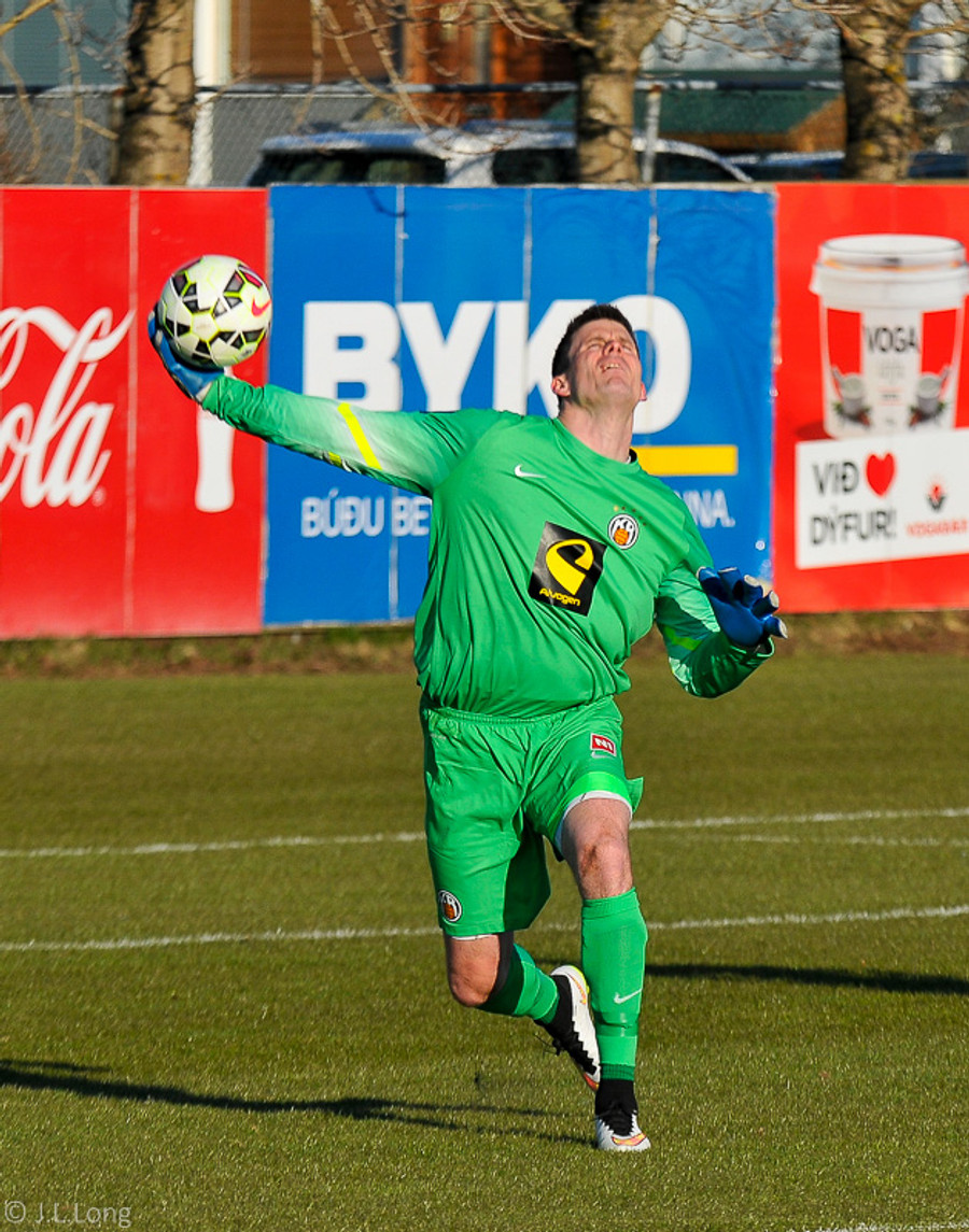 Sören Fredriksen með skalla að marki og yfir Róbert í markinu.
