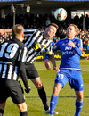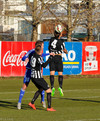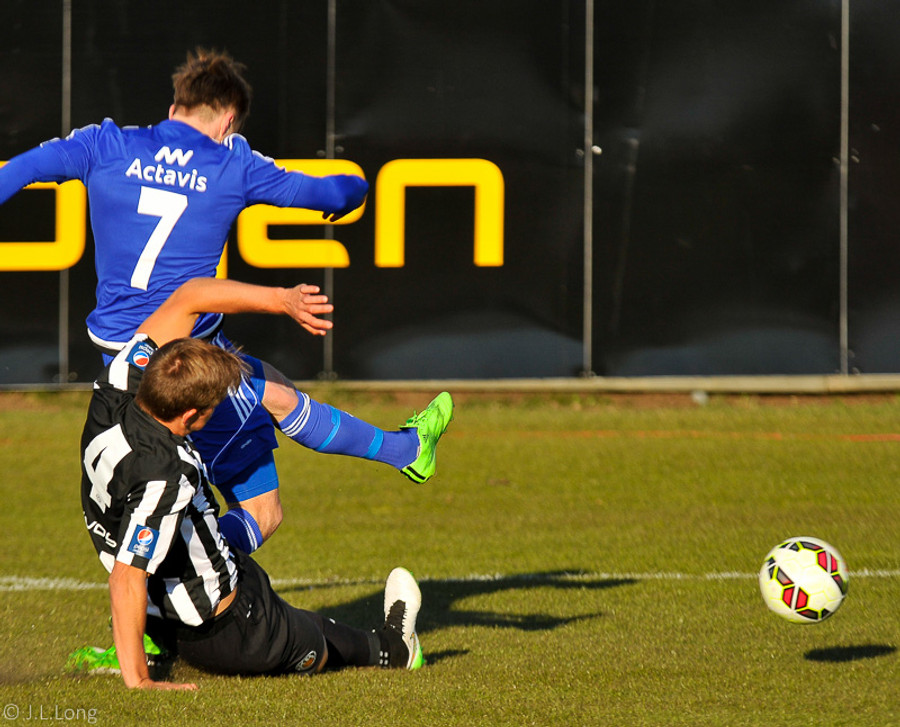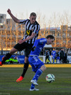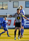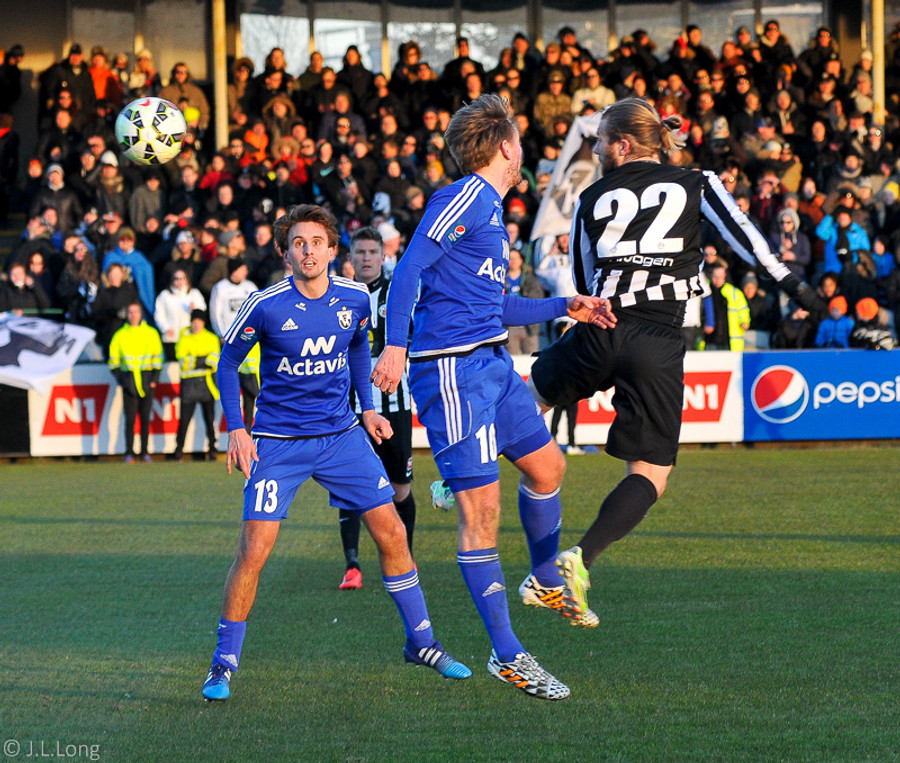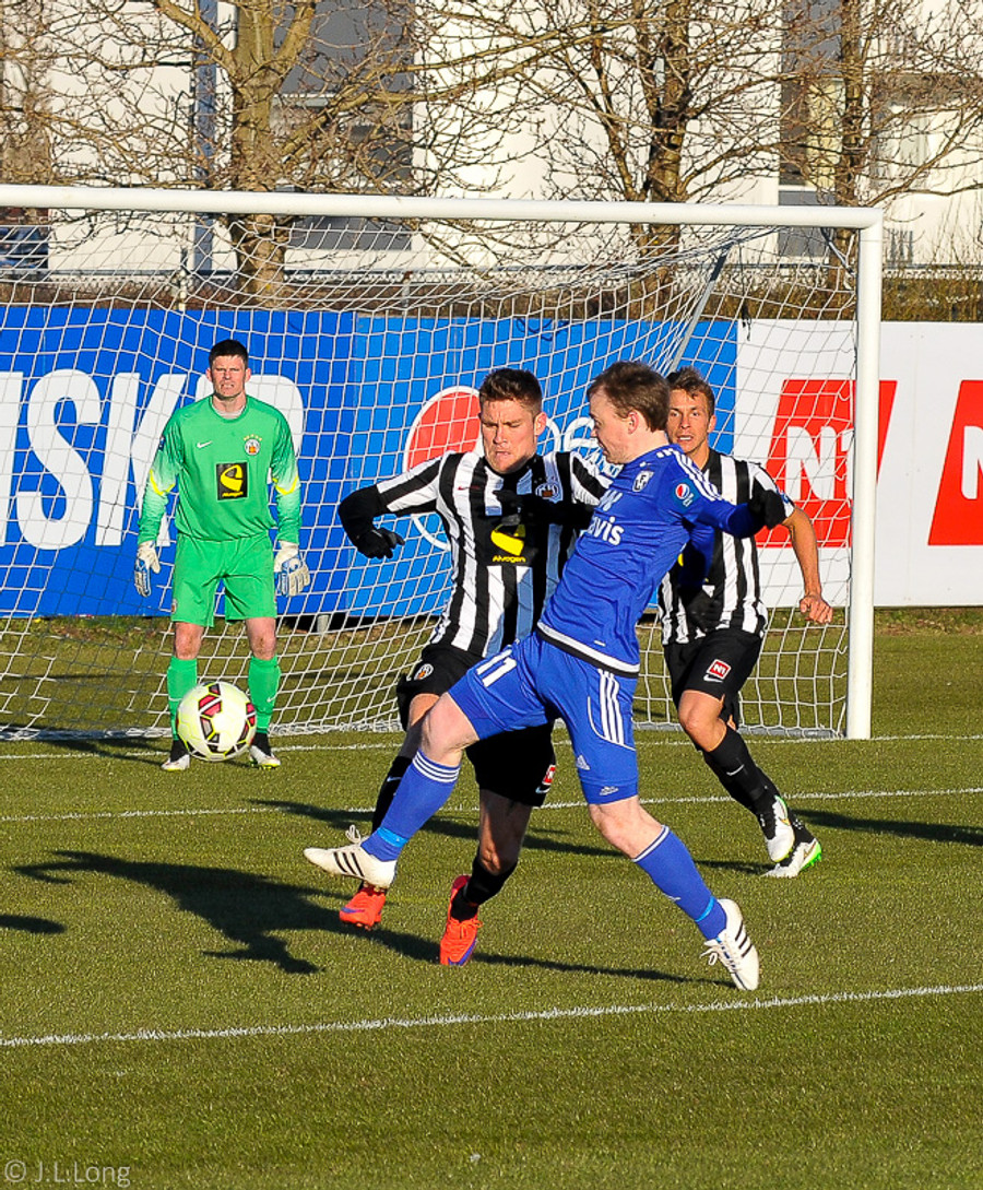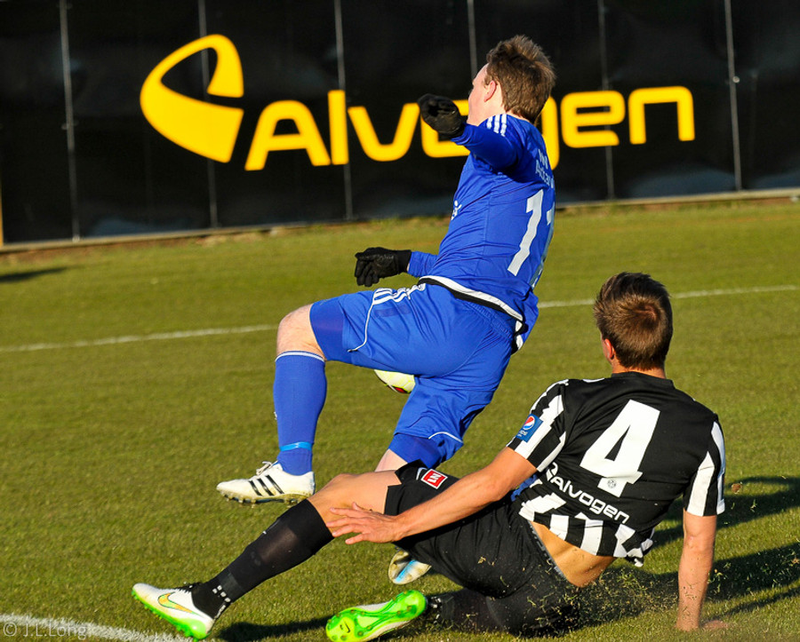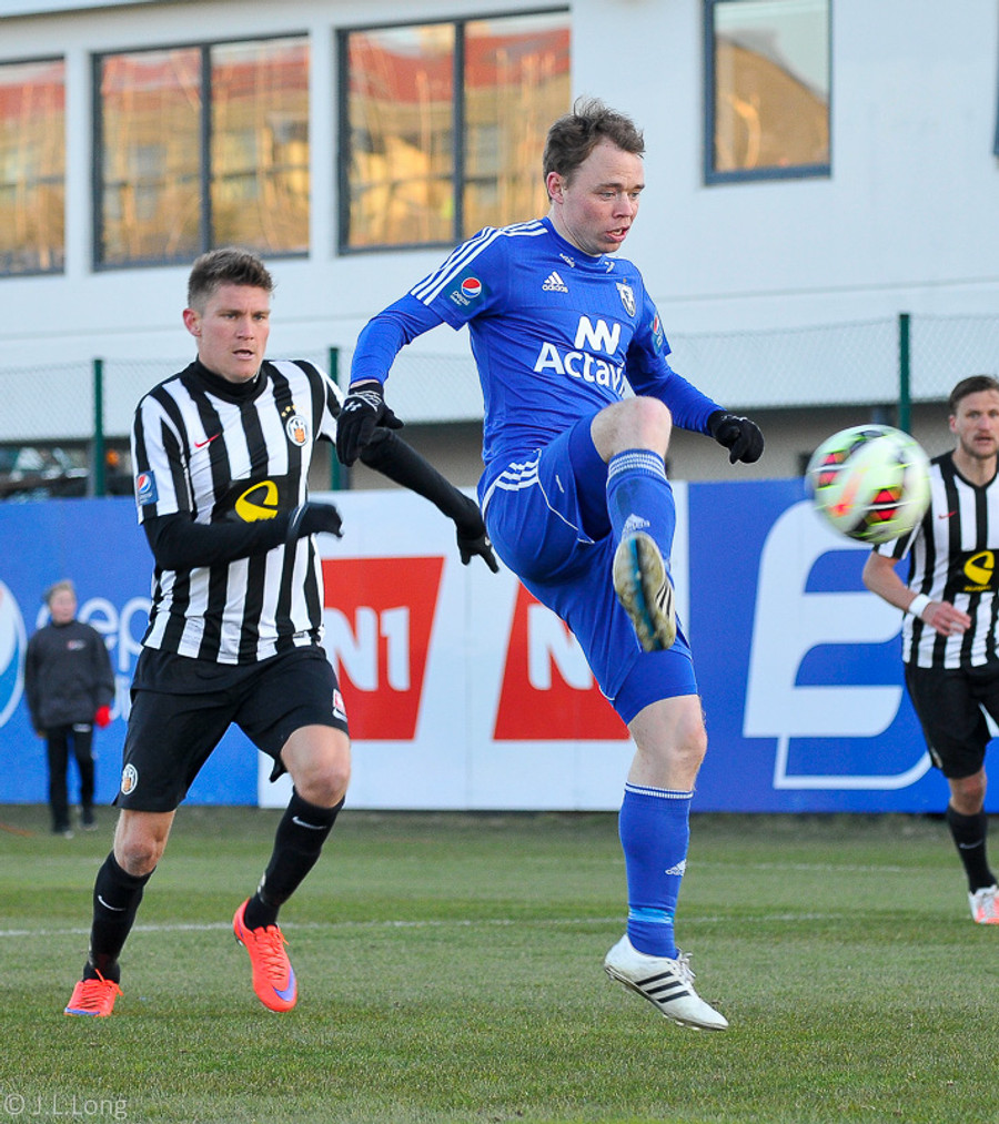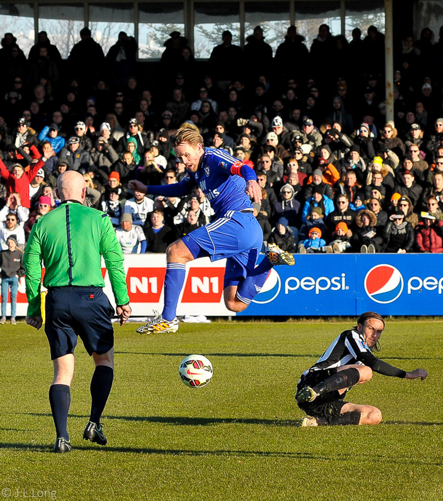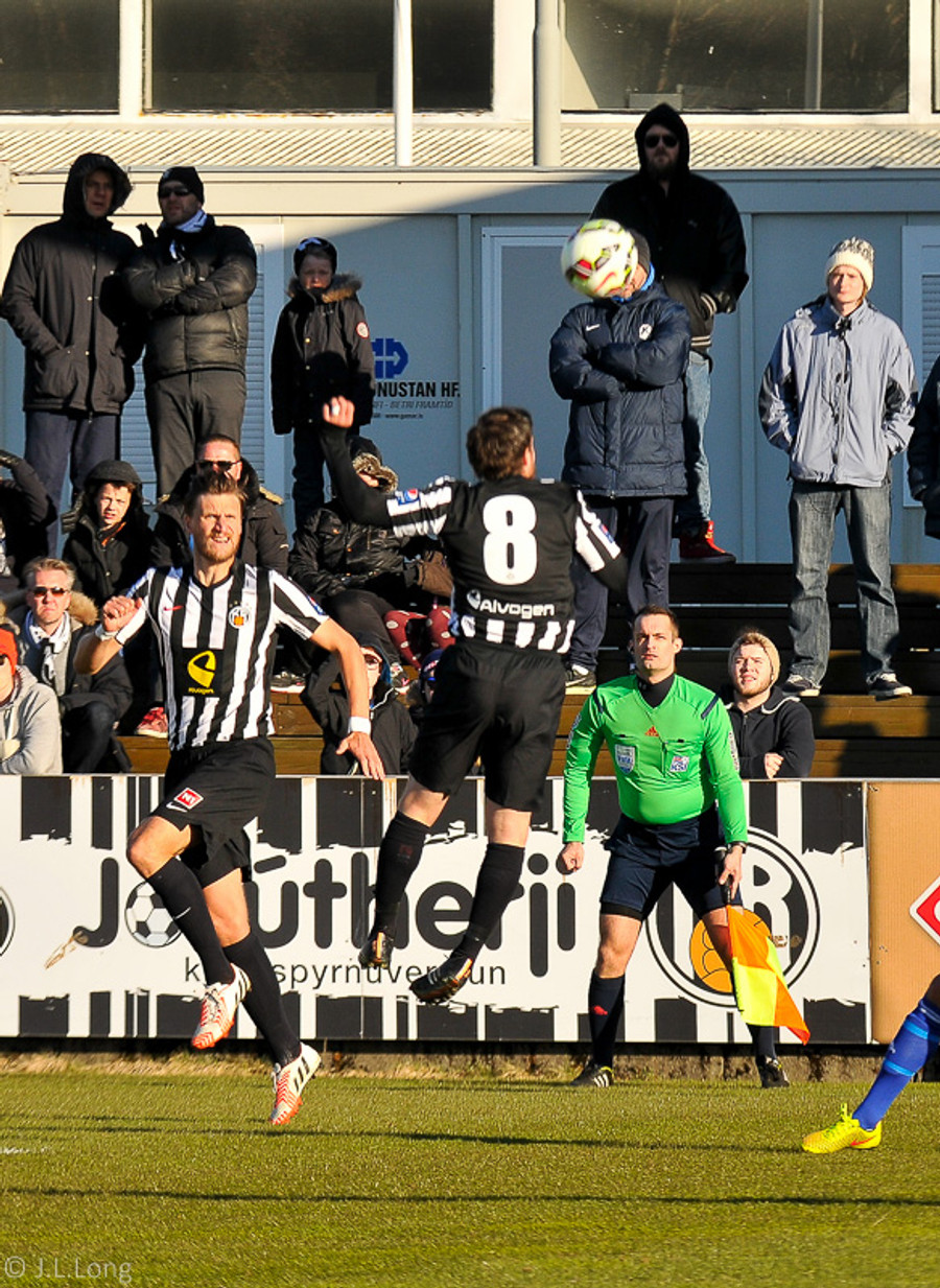 Sören Fredriksen með skalla að marki og yfir Róbert í markinu.