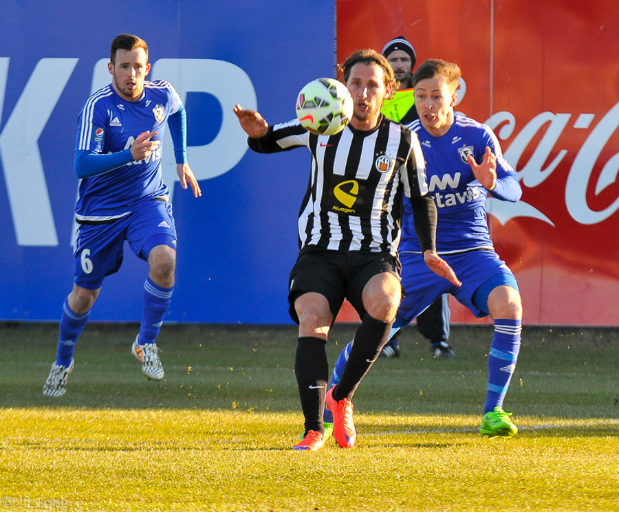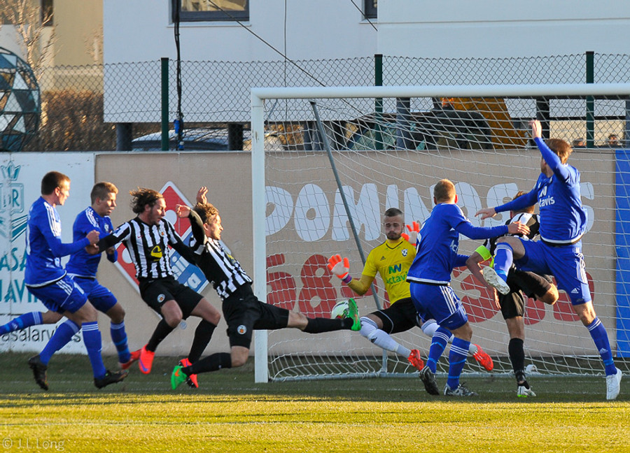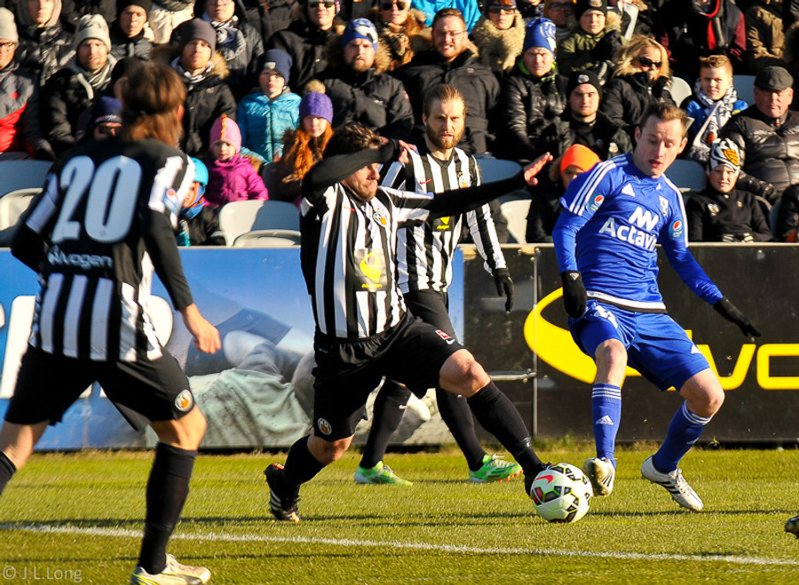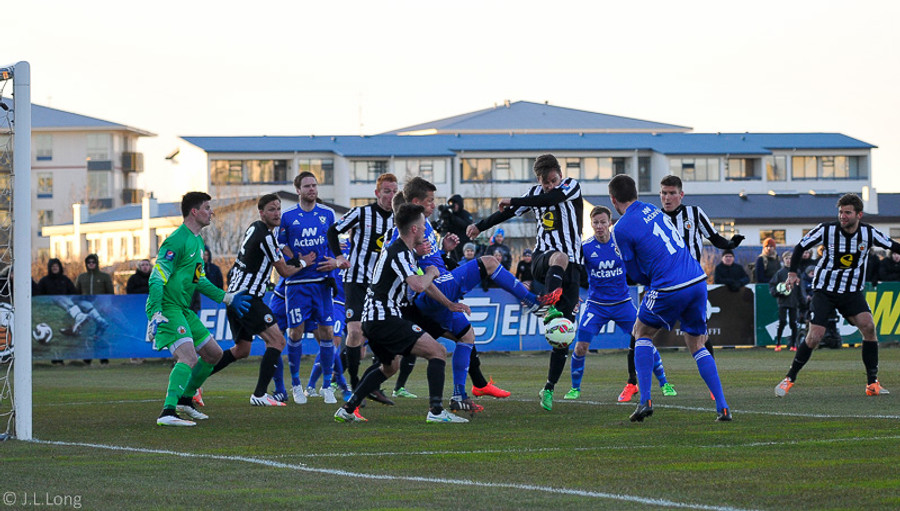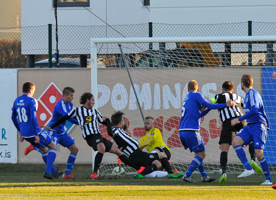 FH með skot sem hafði viðkomu í Kristjáni Flóka og fór síðan beint í fangið á Stefáni Loga. Hættulaust.