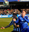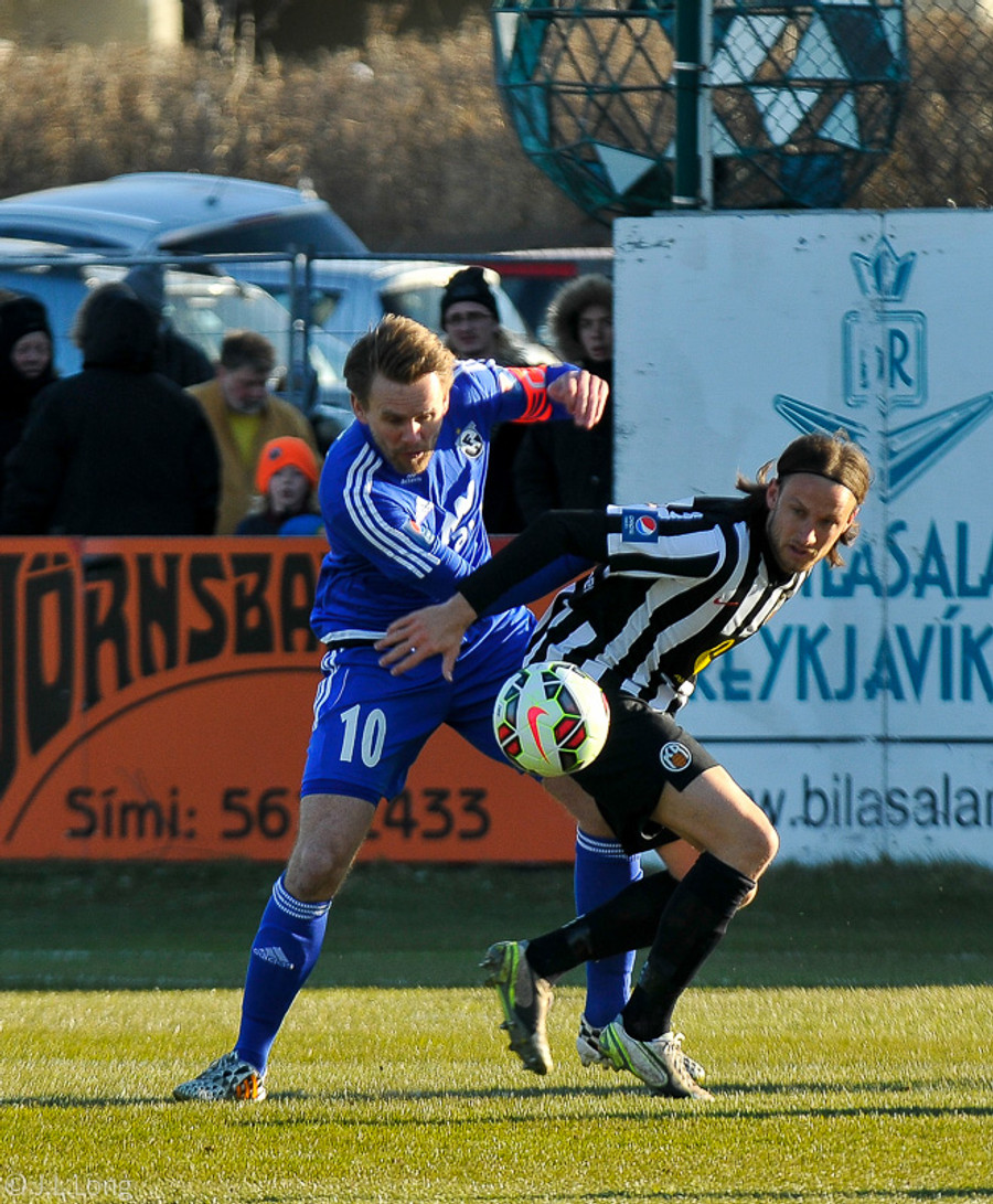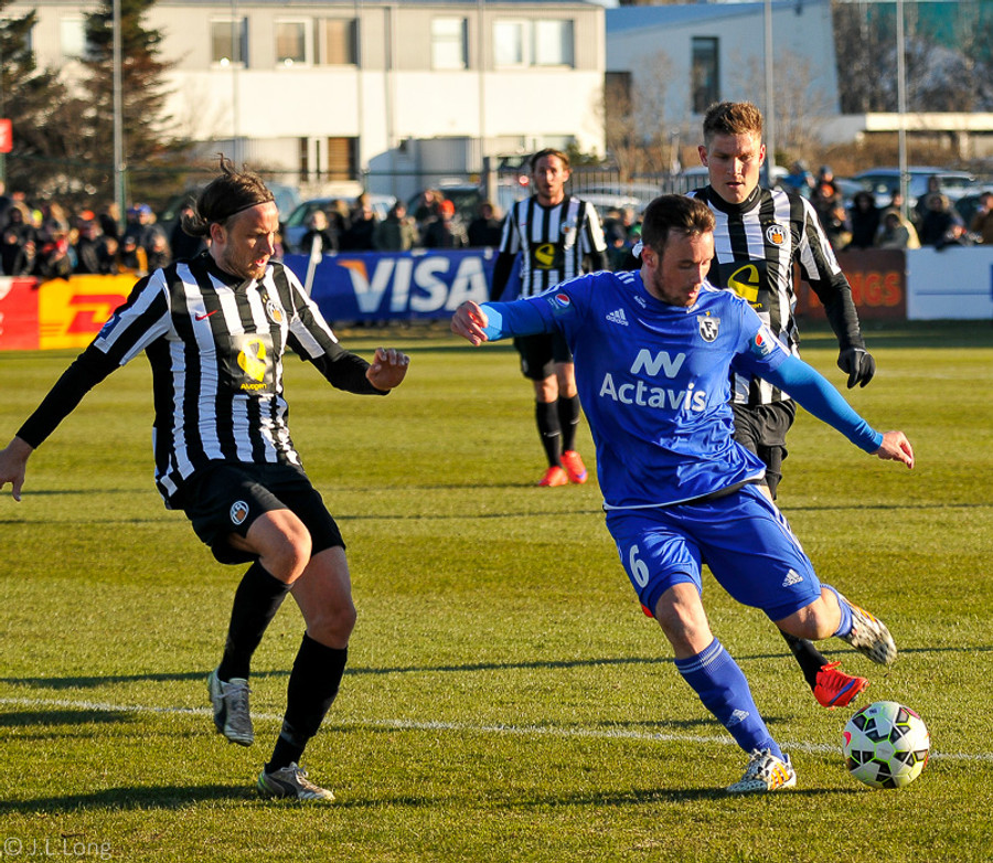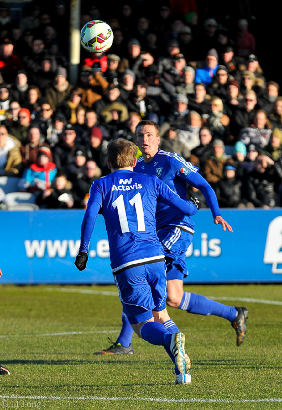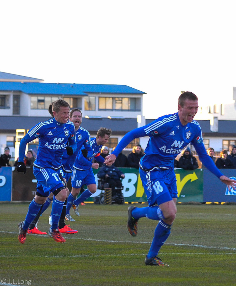 MAAAAARK!!! Guðmann vann skallaeinvígi út á Atla Guðnason sem tók boltann á lærið og skoraði með góðu skoti!