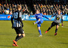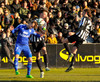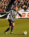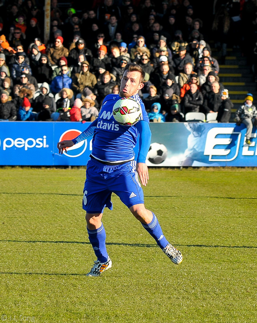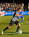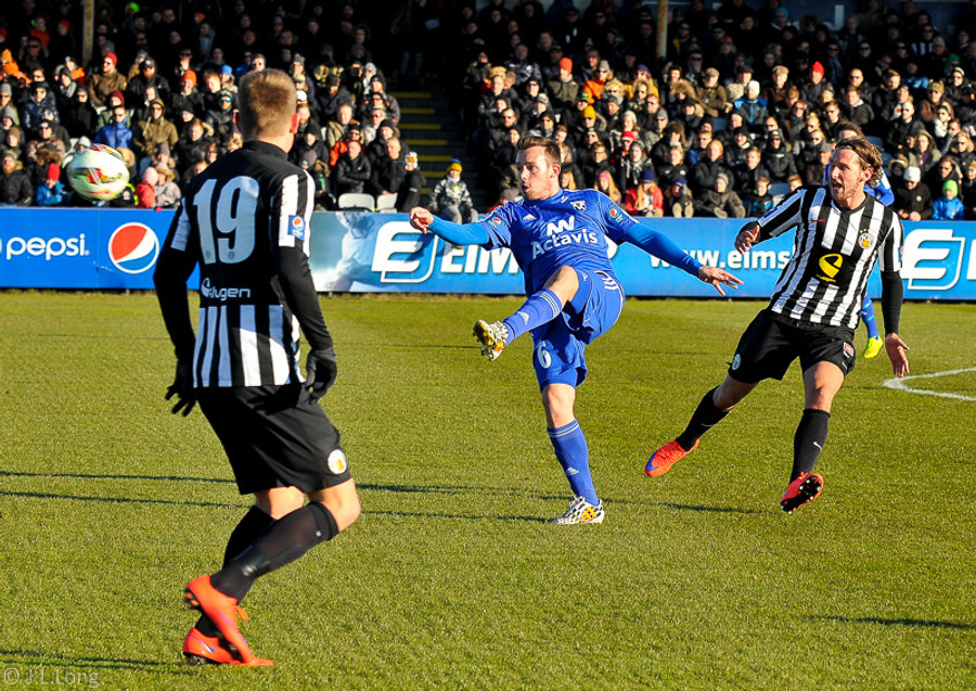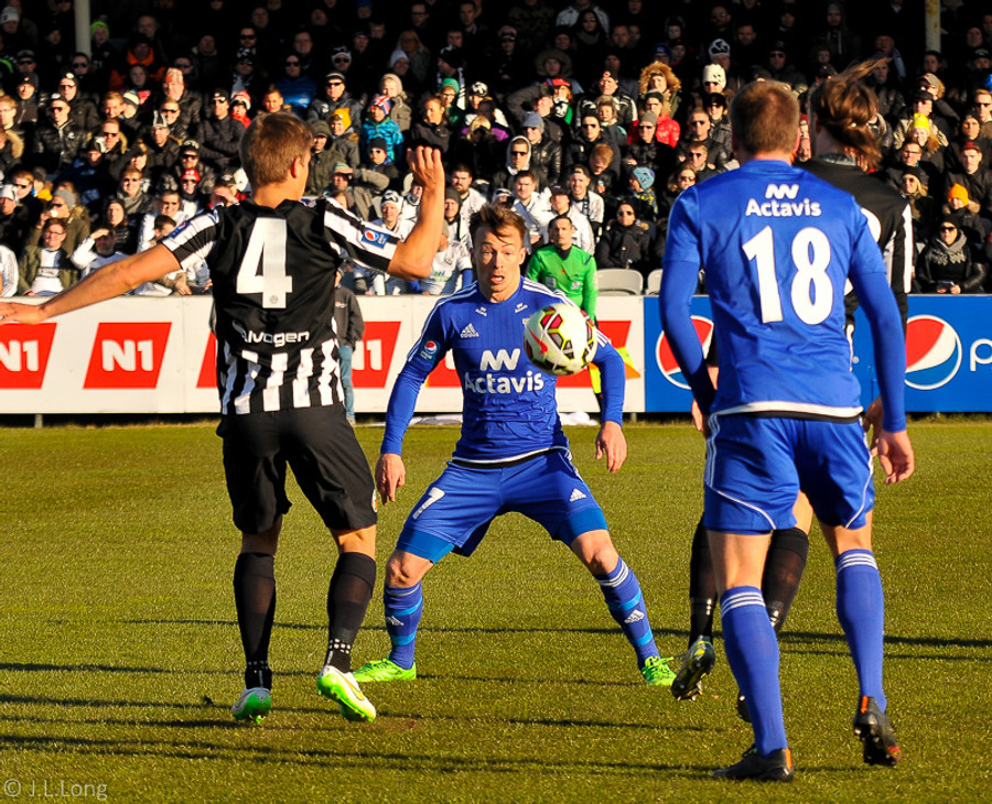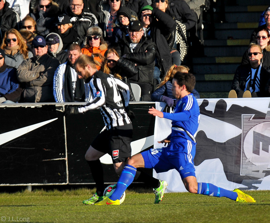 Þetta er leikur margra innkasta. Aðdáendur innkasta fá allavega sinn skammt... heyrðu þarna kom hörkufæri! Sören Frederiksen með skalla en hann laus og beint á Róbert!