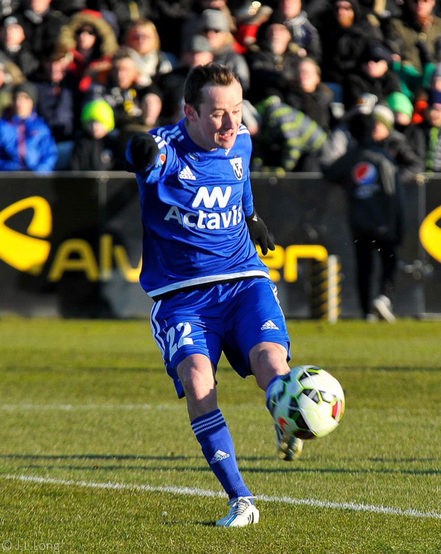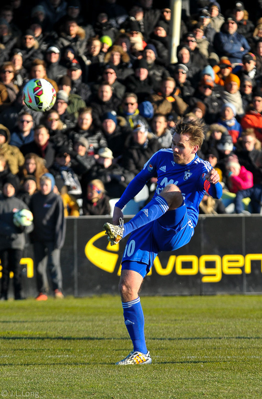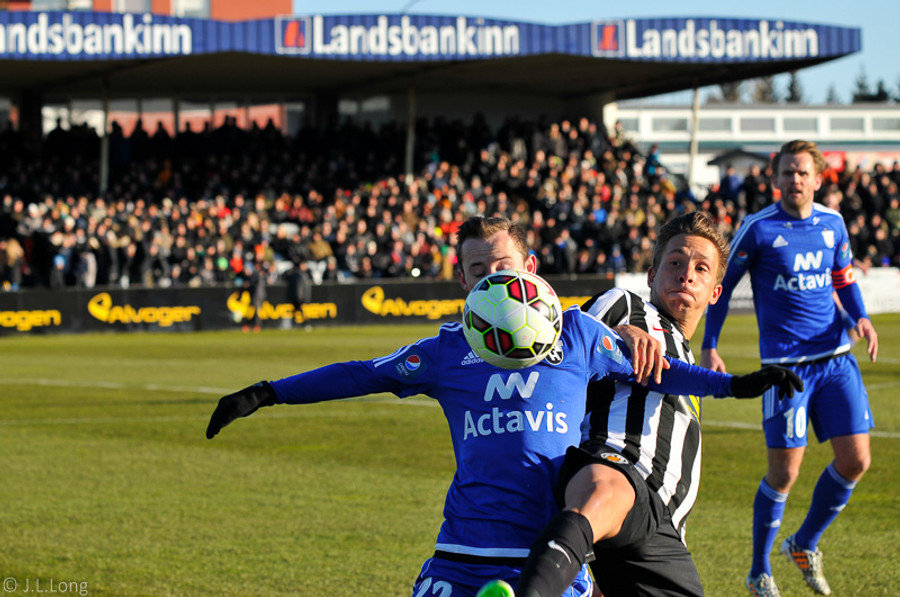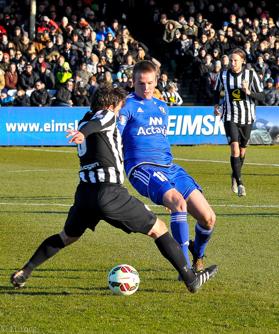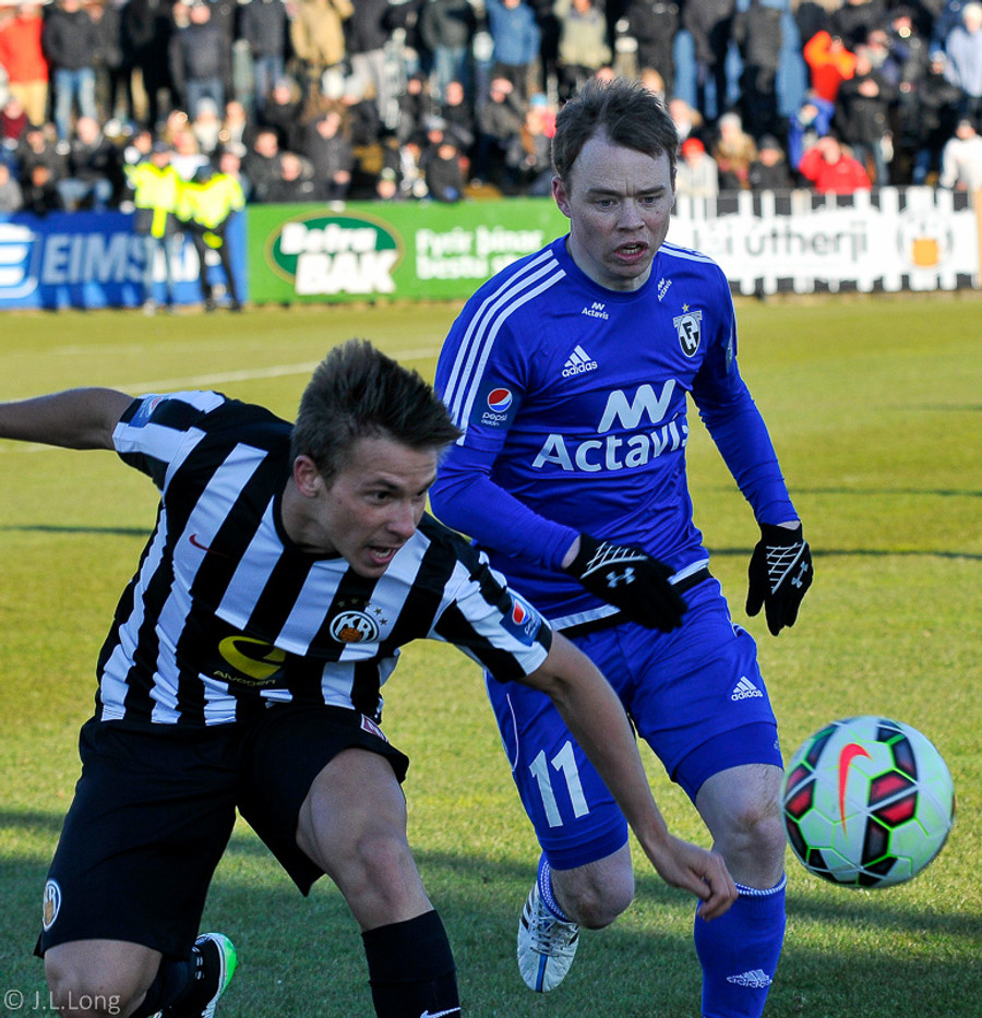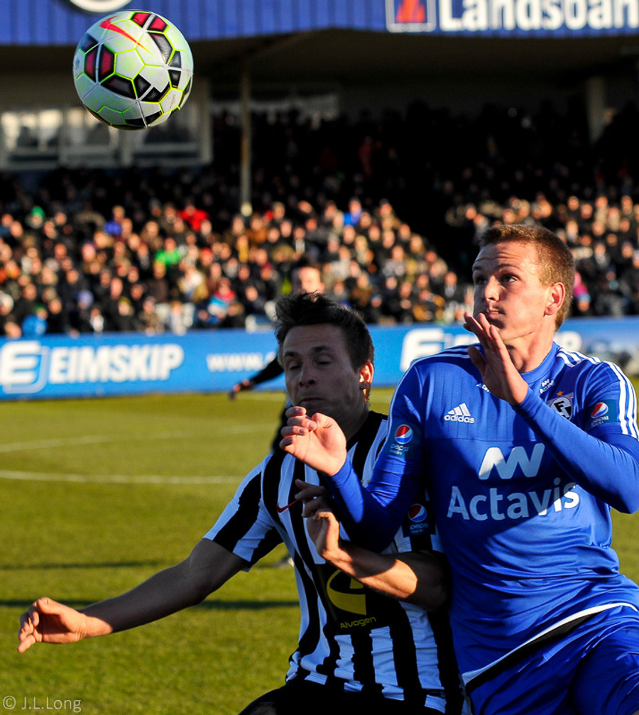 Gary Martin krækir í aukaspyrnu úti vinstra megin. Guðmann fór í bakið á honum. Fyrirgjafarmöguleiki...