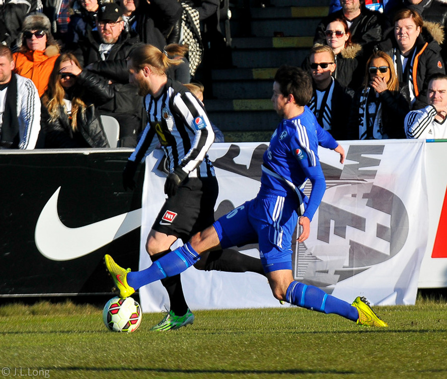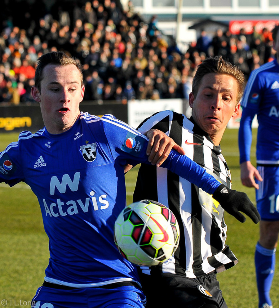 MIKIL HÆTTA! Steven Lennon með skemmtileg tilþrif og náði að senda á Kristján Flóka Finnbogason sem var í fínu skotfæri fyrir utan teig en skot hans ekki nægilega öflugt og beint á Róbert.