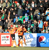 Andrés Már kemur inn, Fylkismenn í stúkunni gleðjast yfir því.