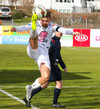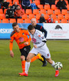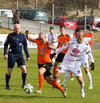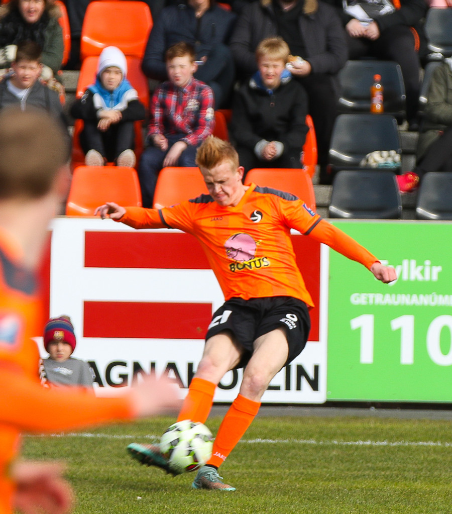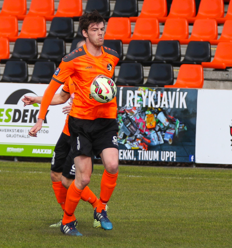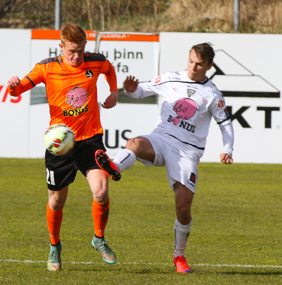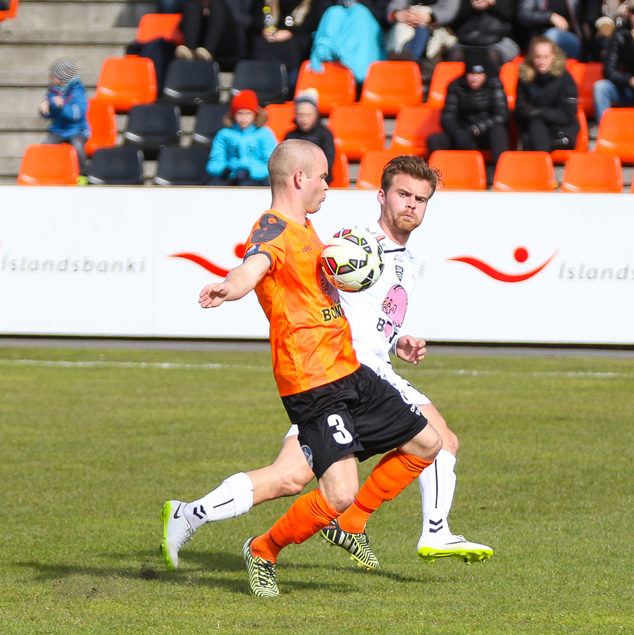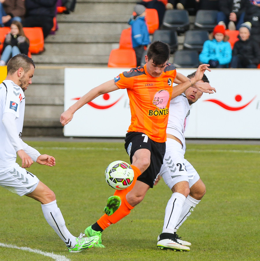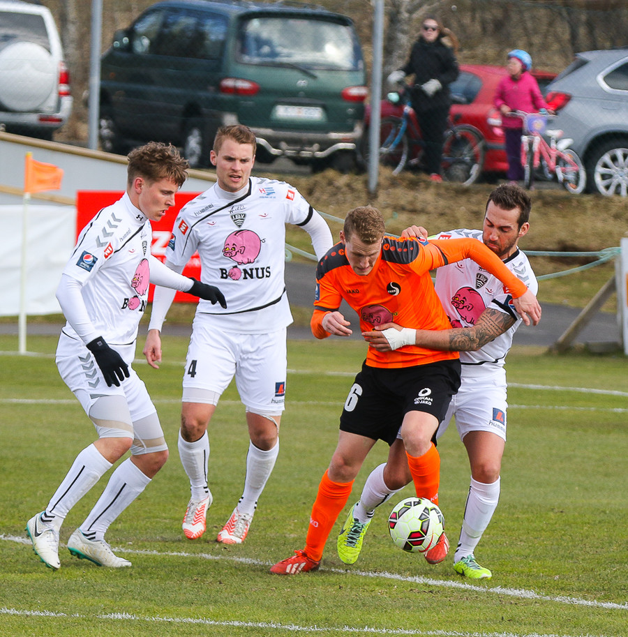 Vinstri bakvörðurinn Daði reynir þrumuskot utan af velli. Guðjón Orri ver í horn. Andrés Már tekur hornið en mér sýnist það vera Radovinkov sem setur boltann framhjá.