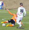 Þarna munaði ekki miklu. Guðjón Orri tekur sjónvarpsvörslu eftir hörkuskot Alberts.