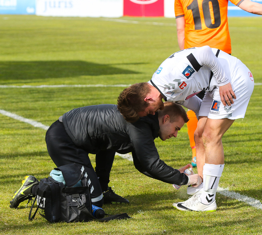 Skondið atvik. Fylkir fær aukaspyrnu aftarlega á vellinum. Bjarni Þórður markvörður tekur spyrnuna en biður Garðar Örn um að spreyja fyrir sig áður. Garðar verður við beiðninni og Bjarni brosir. Gaman af þessu.