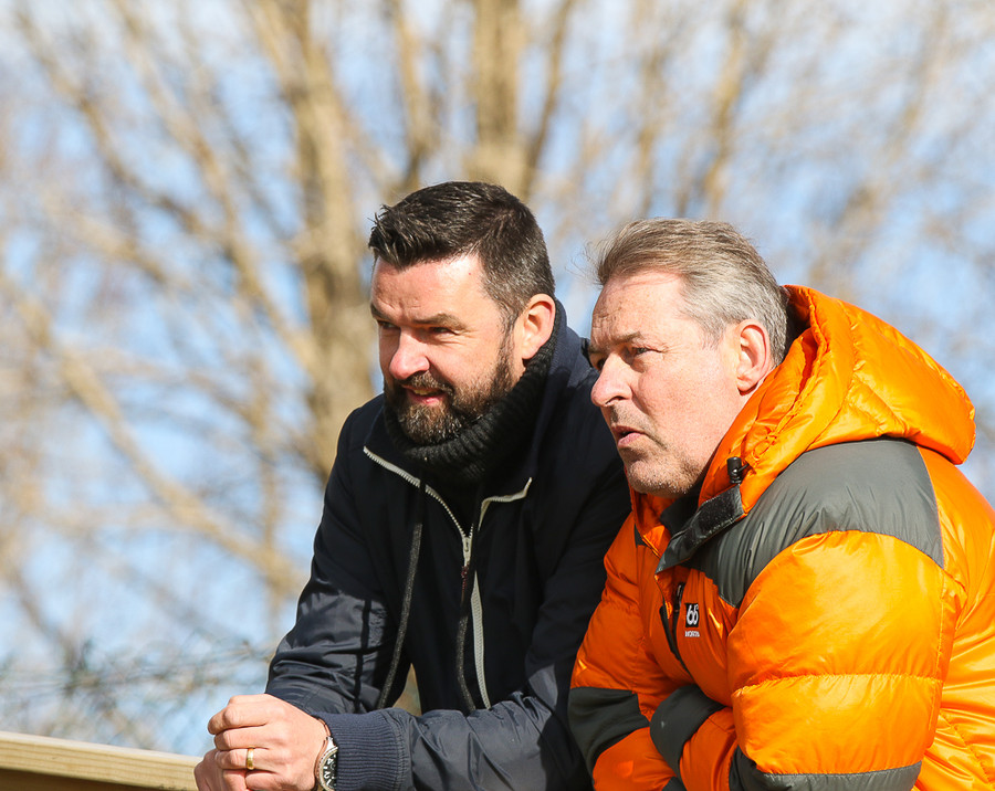 Liðin eru tilbúin hér sitthvorum megin við lýsinguna.