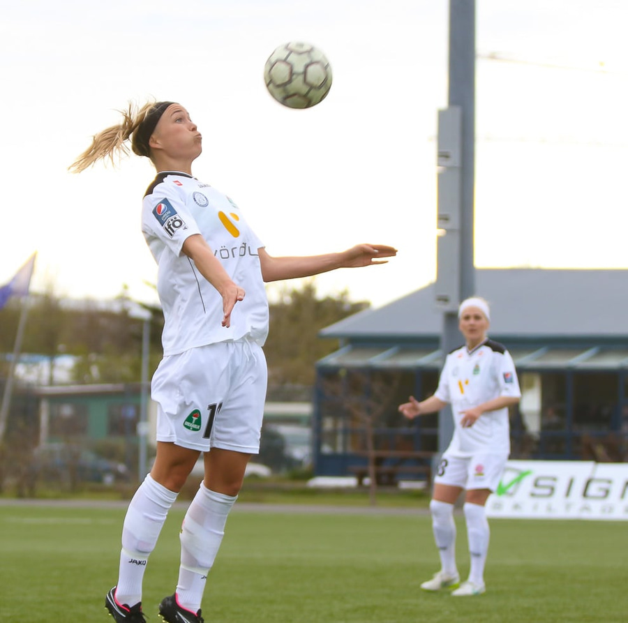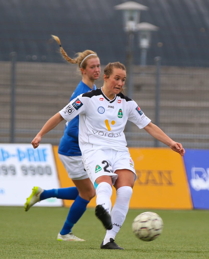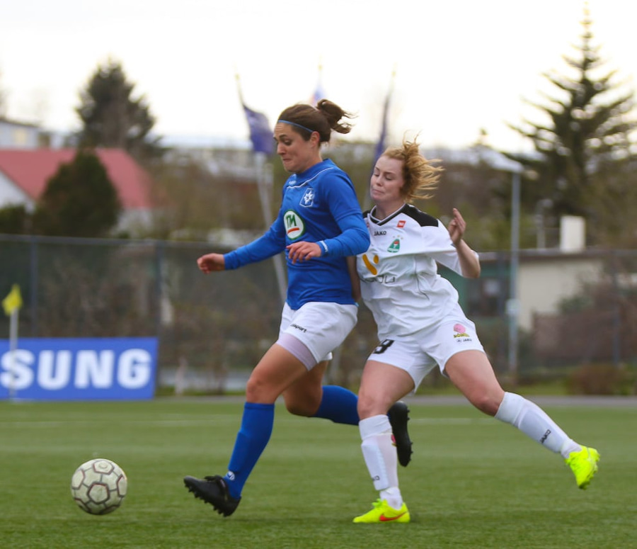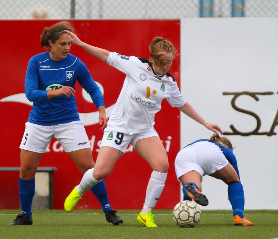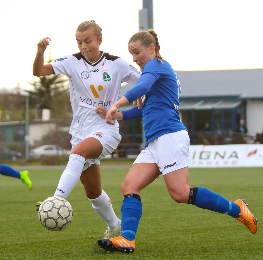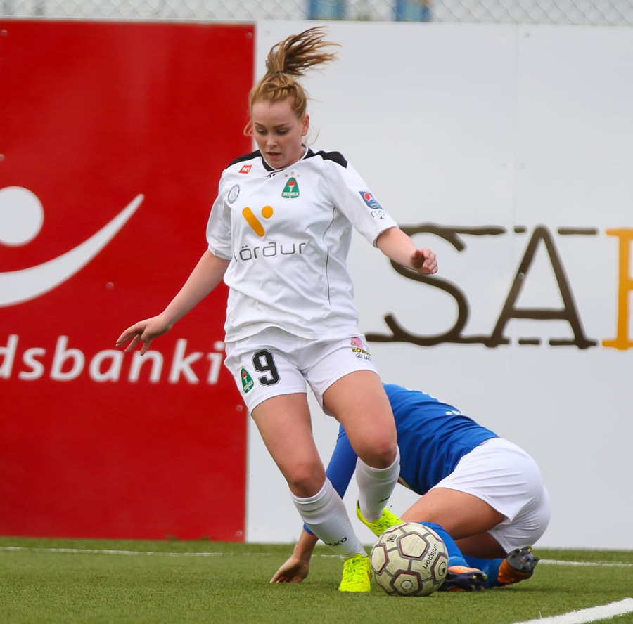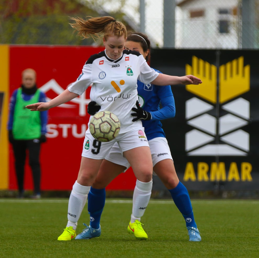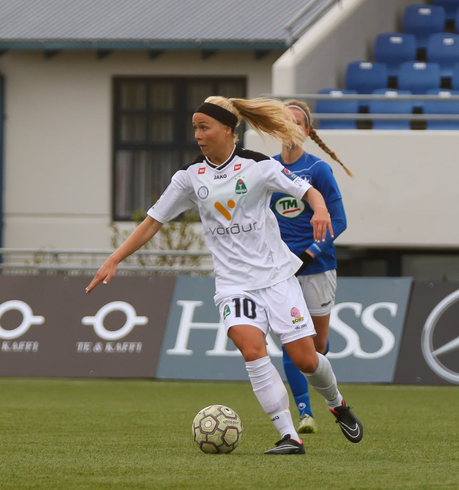 Það má þó ekki taka það af Rakeli, að hún var vel staðsett og ákveðin í að ná boltanum, þegar tækifærið gafst.