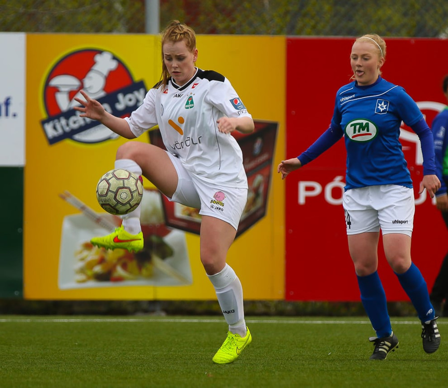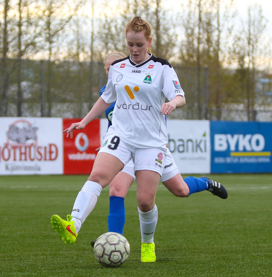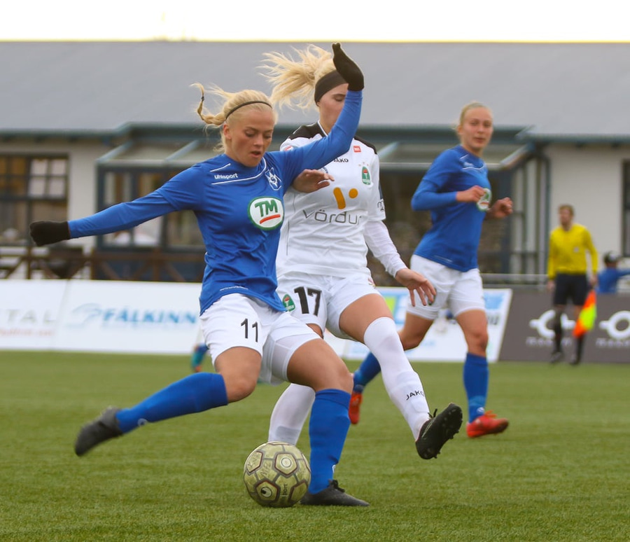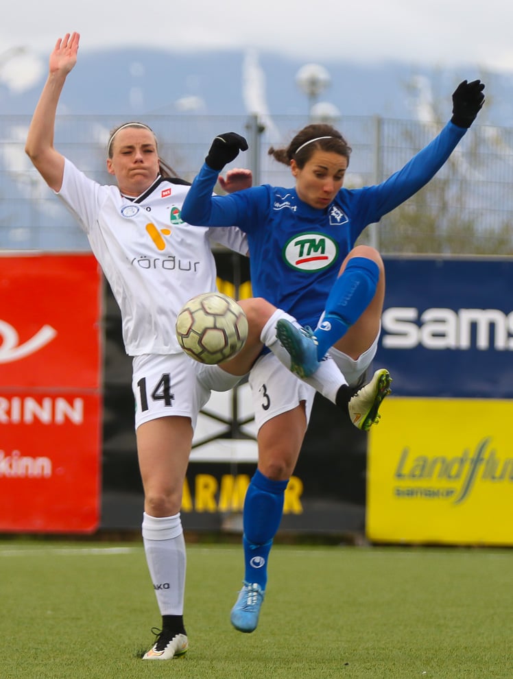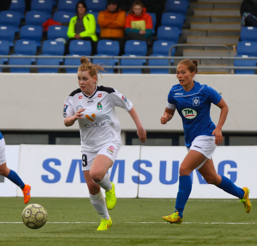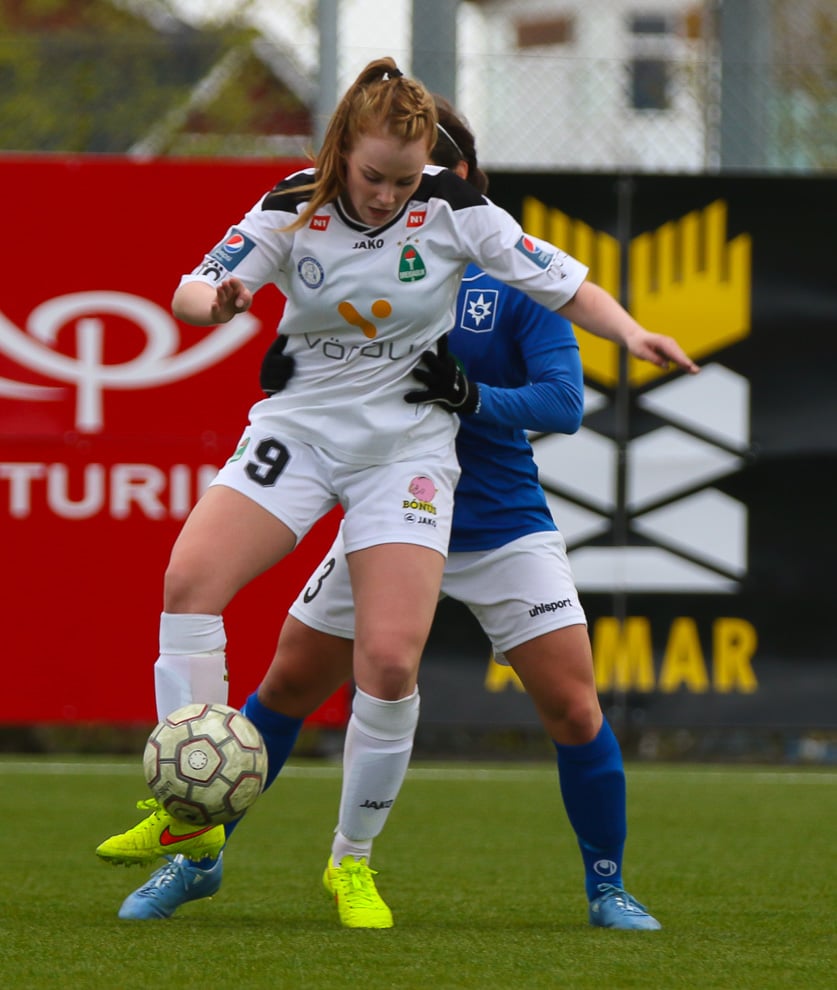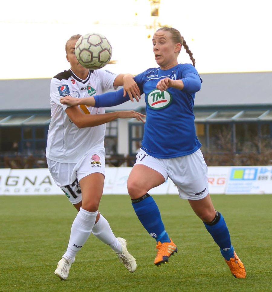 Það má þó ekki taka það af Rakeli, að hún var vel staðsett og ákveðin í að ná boltanum, þegar tækifærið gafst.
