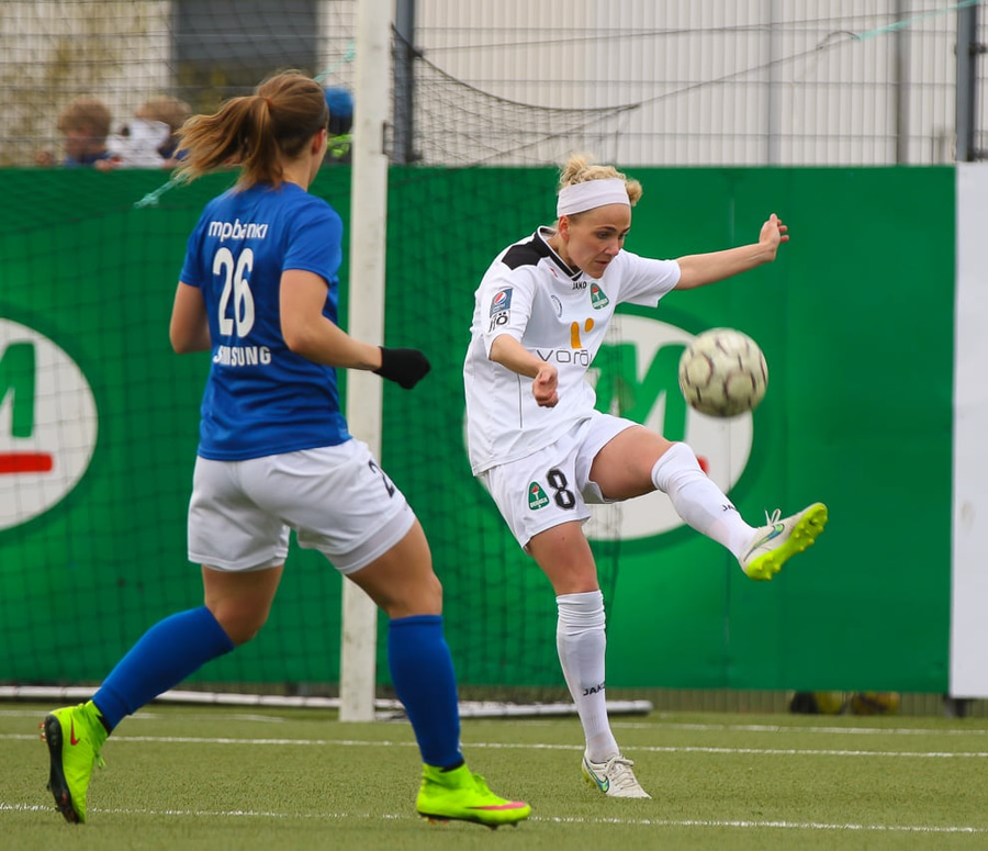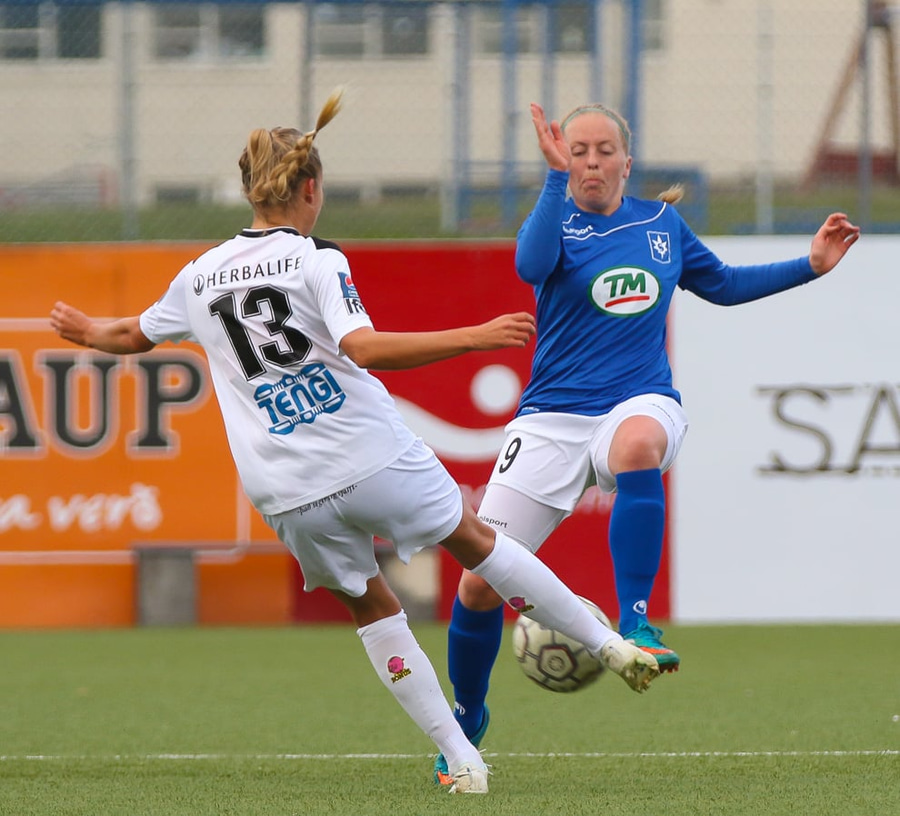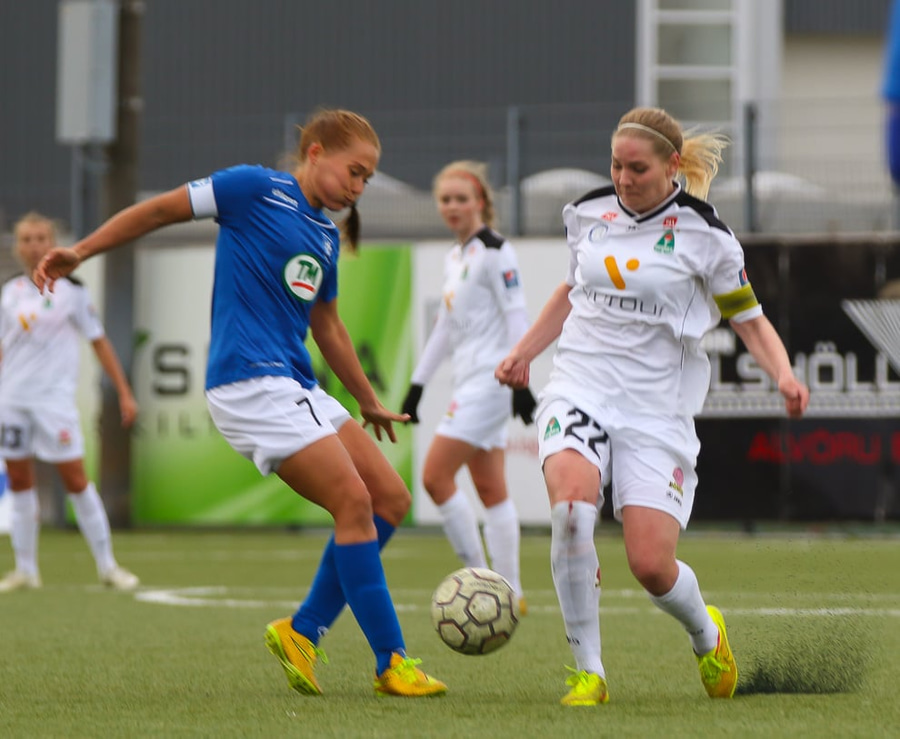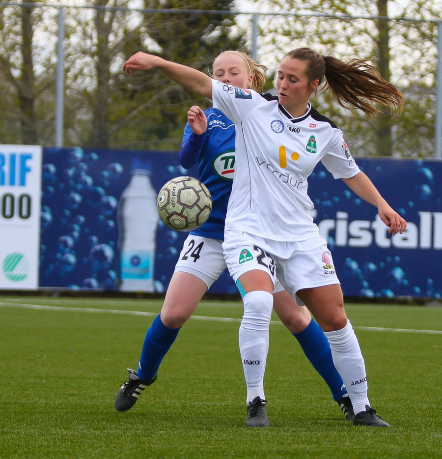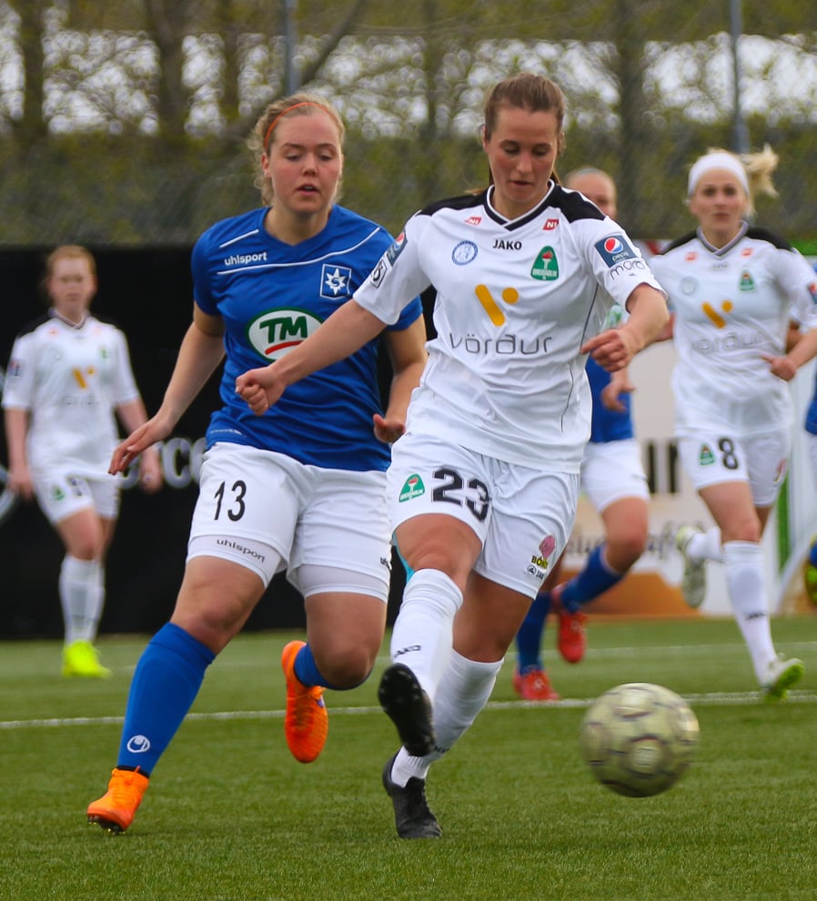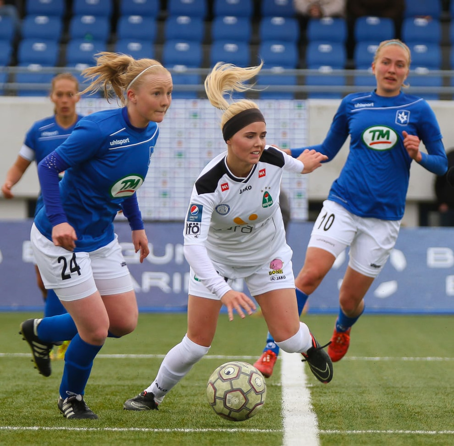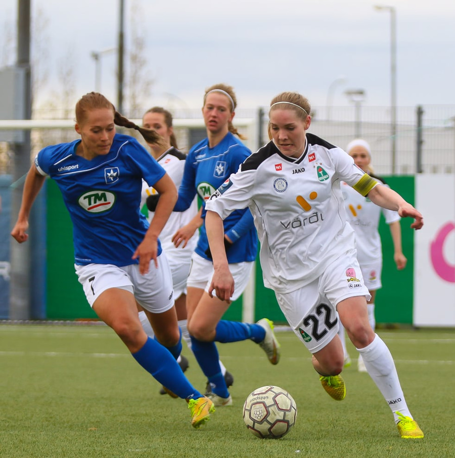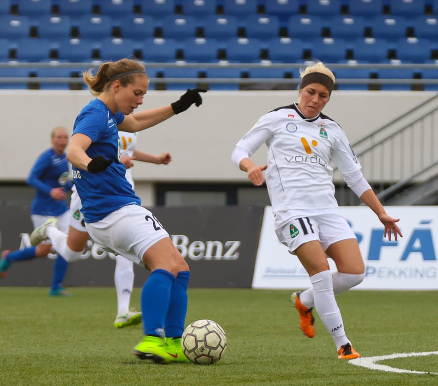 Það má þó ekki taka það af Rakeli, að hún var vel staðsett og ákveðin í að ná boltanum, þegar tækifærið gafst.
