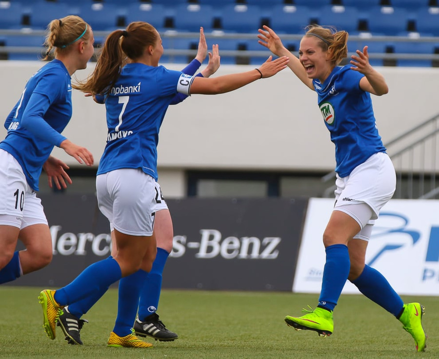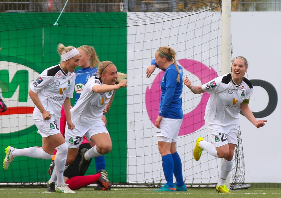 Eftir hornspyrnu frá Aldísi Köru sló Sandra boltann nokkra cm upp í loftið. Þaðan datt boltinn niður í teiginn. Þar var Rakel Hönnudóttir fyrst að boltanum og stýrði honum í netið.