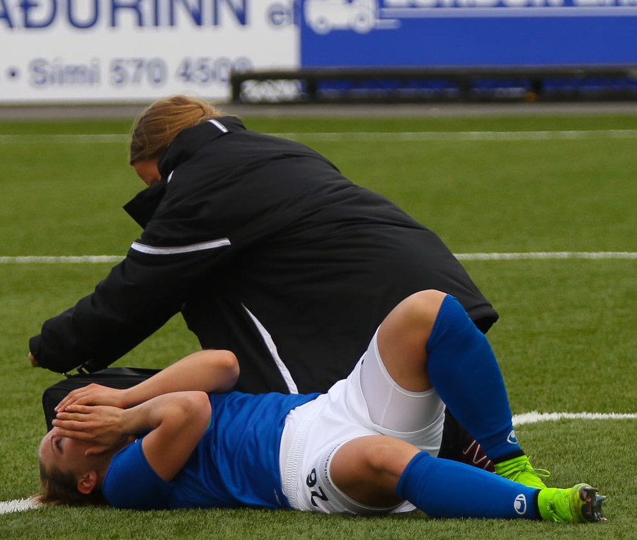 Hún er þó staðin upp og verður líklega komin inn á völlinn fyrr en síðar.